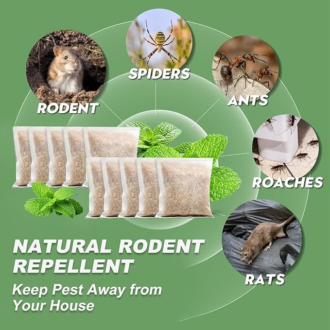 10 Pack/box Rodent Repellent Pouches, Natural Peppermint Oil to Repel Mice and Rats, Indoor & Outdoor Use