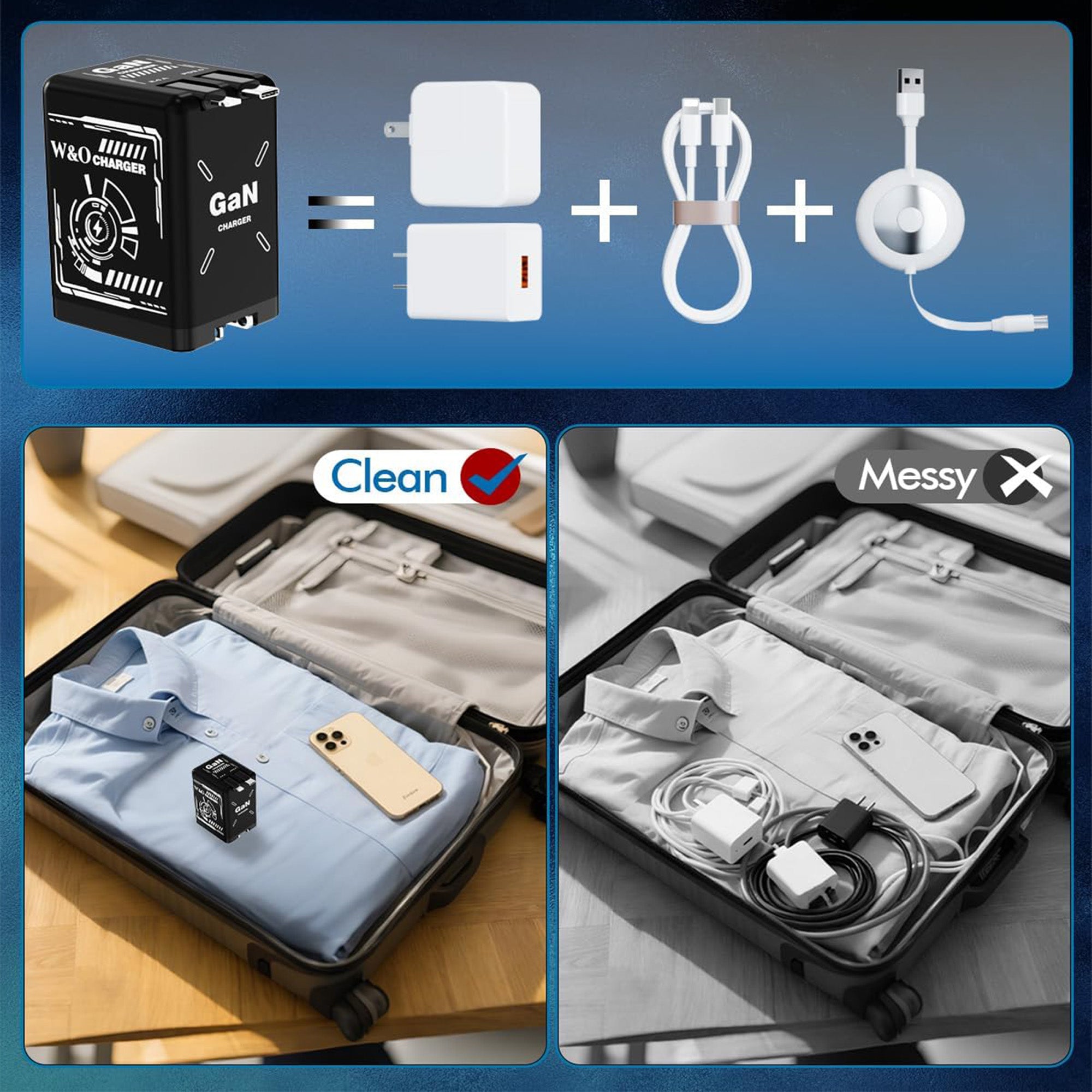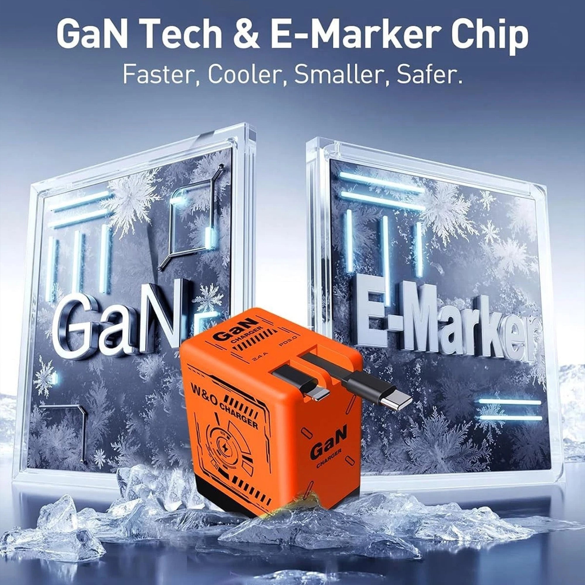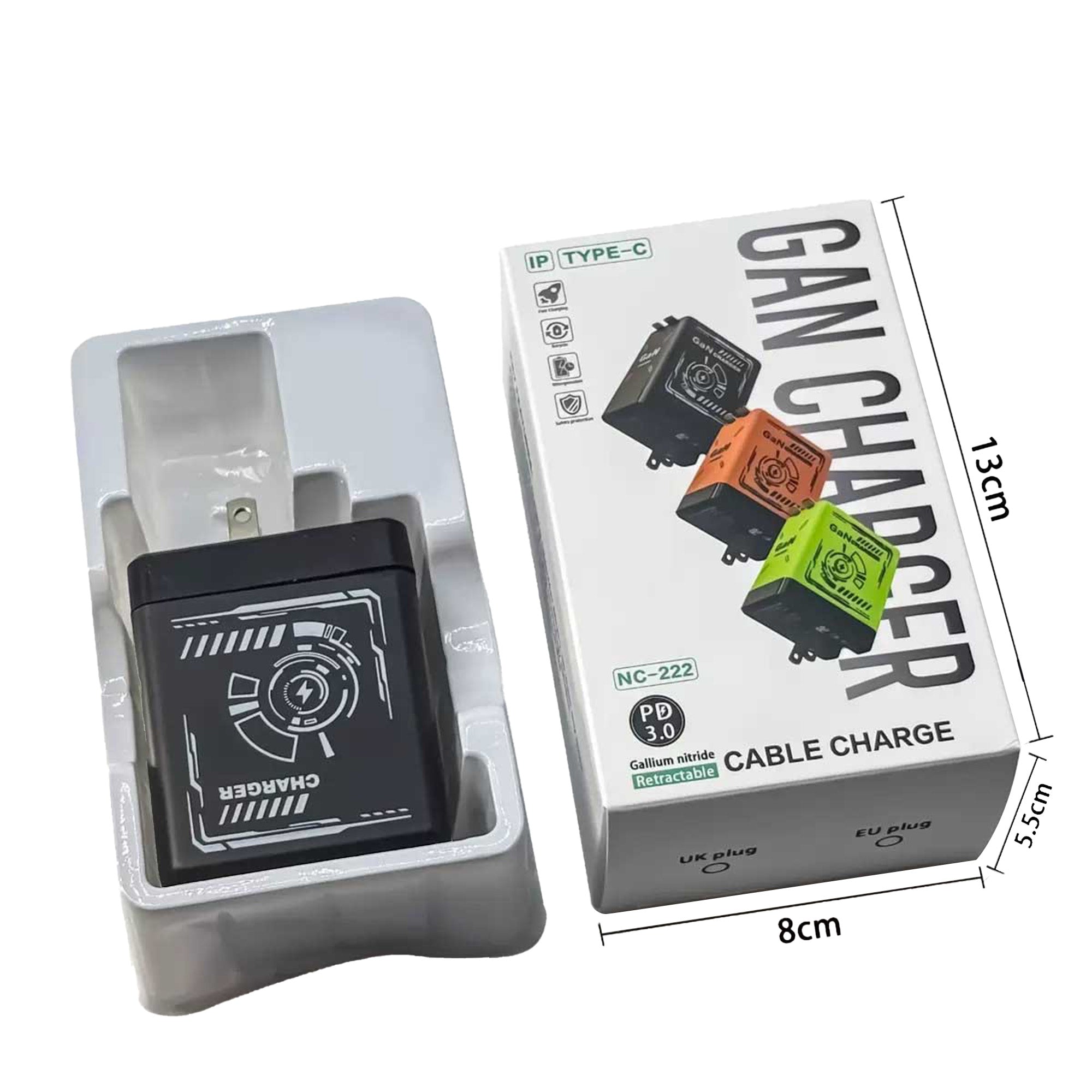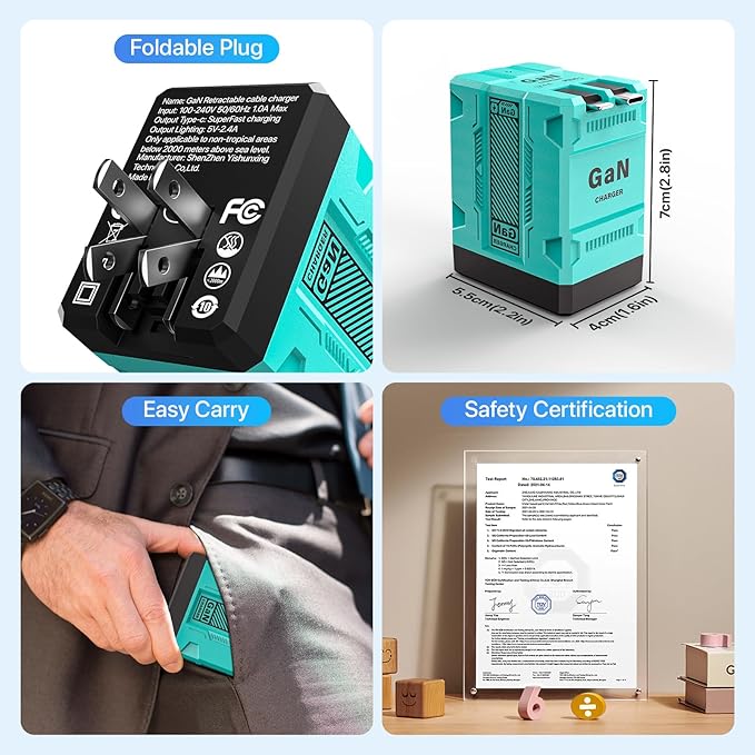 120W GaN Retractable Charger Fast Charger with Lightening and Type-C Cables