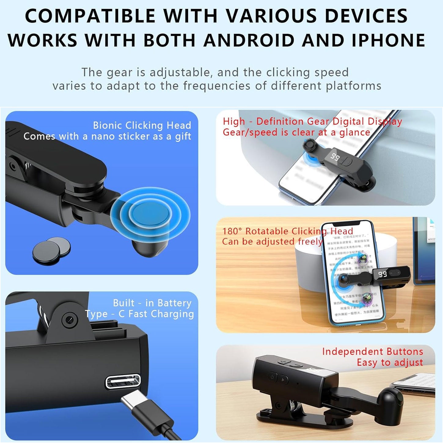 107-Speed Adjustable Touch Screen Auto Clicker for Smart Phone With Digital Display & Built-in Battery