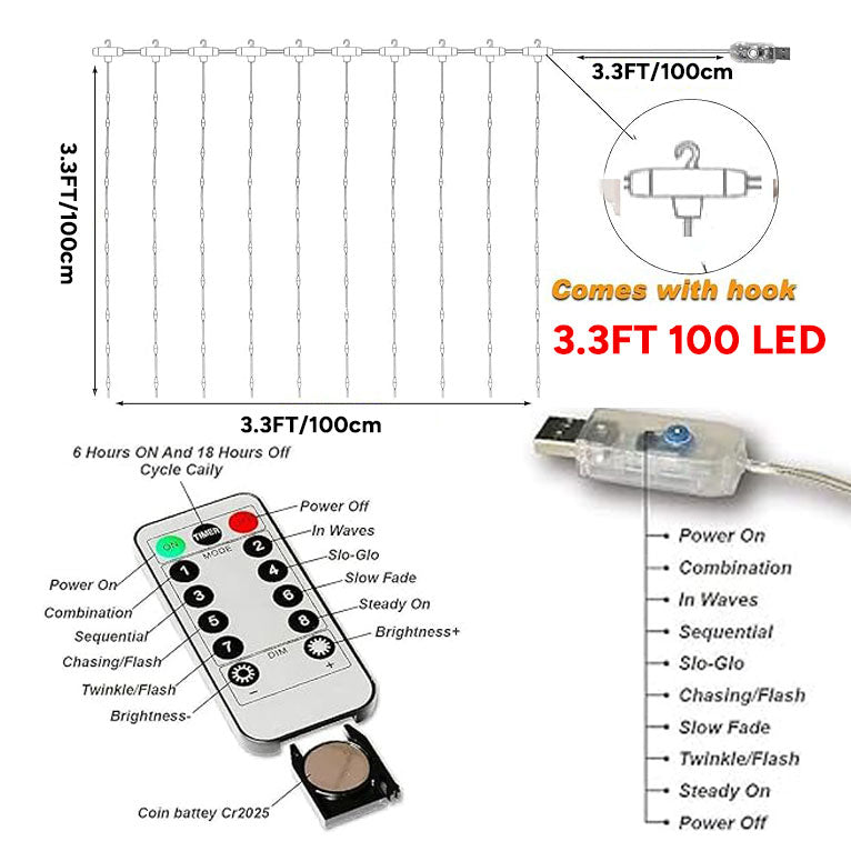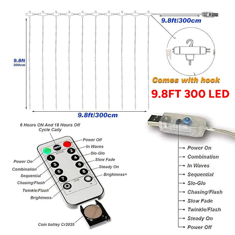 10Pcs/Pack Curtain Lights Cool White, Plug in Hanging Fairy String Light