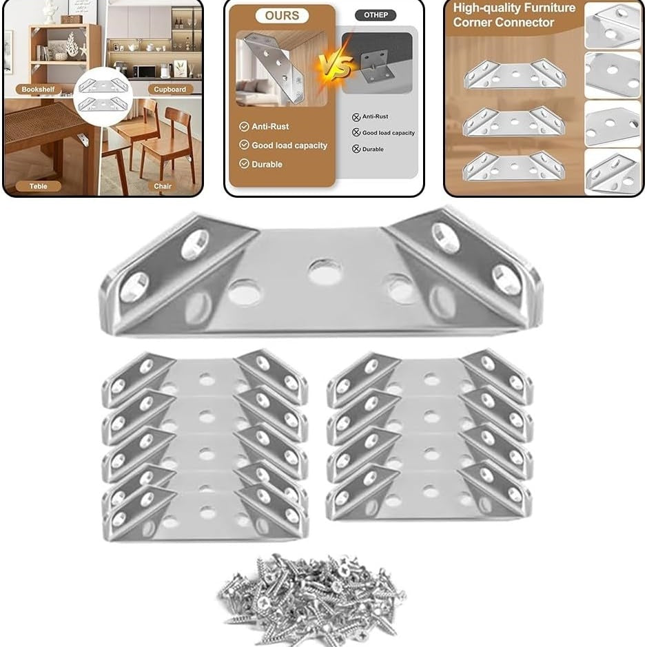 10Pcs Metal Angle Brackets Wood Corner Connectors Furniture Corner for Shelves Tables Chairs Cabinets