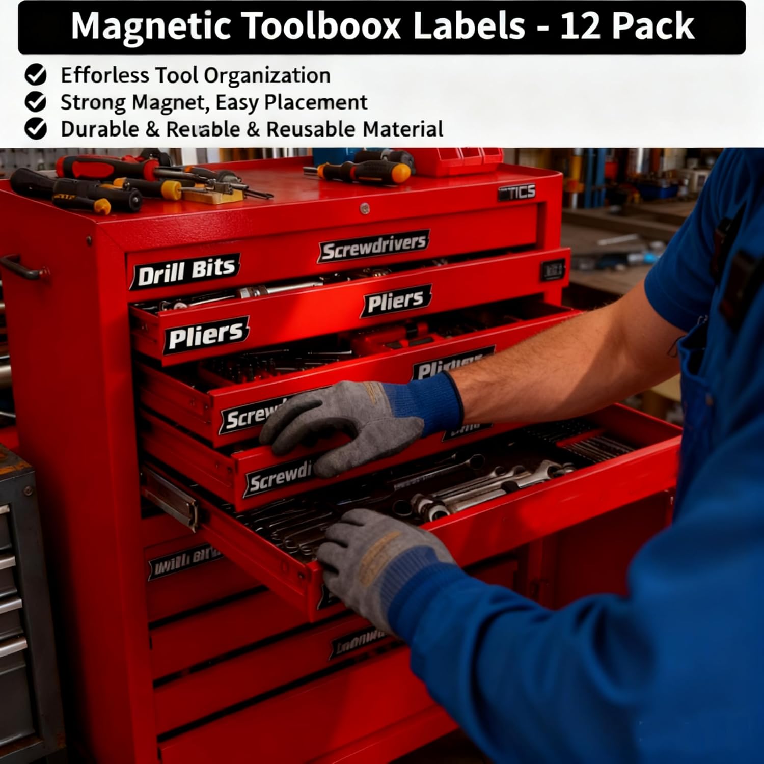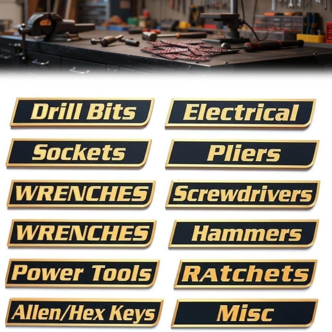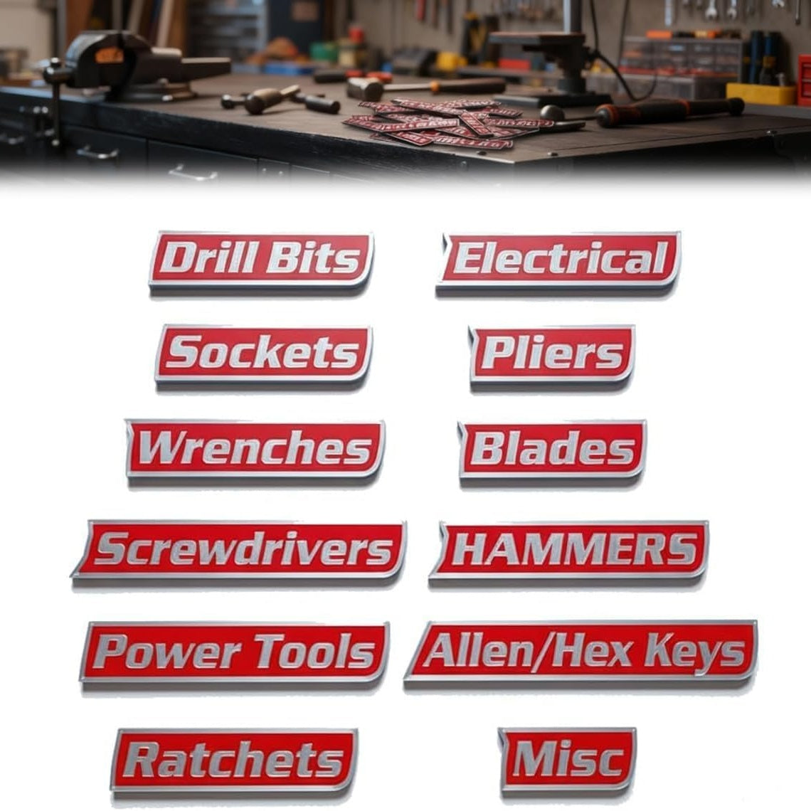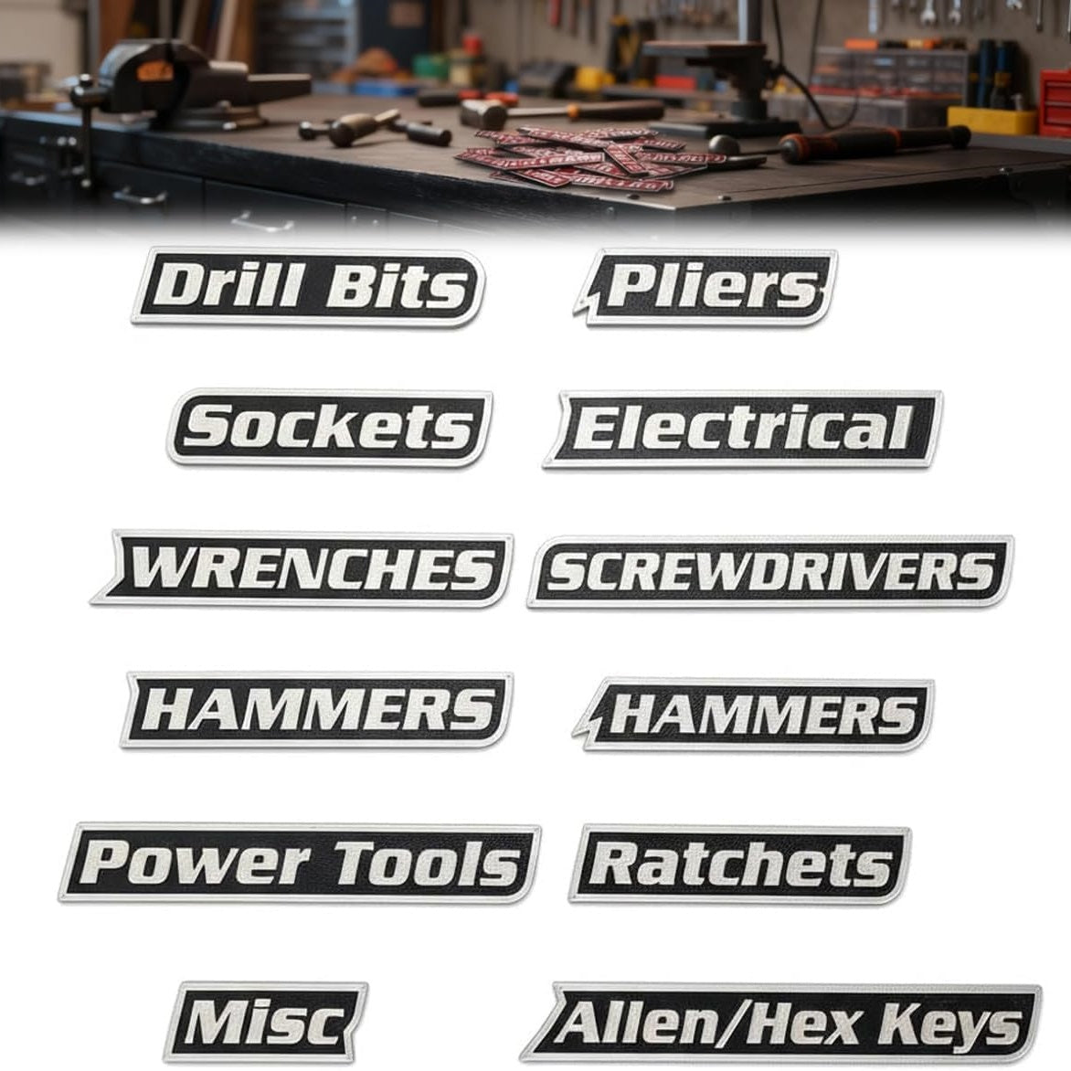 12 Pack Magnetic Tool Box Labels Set, 3D-Printed Reusable Tags