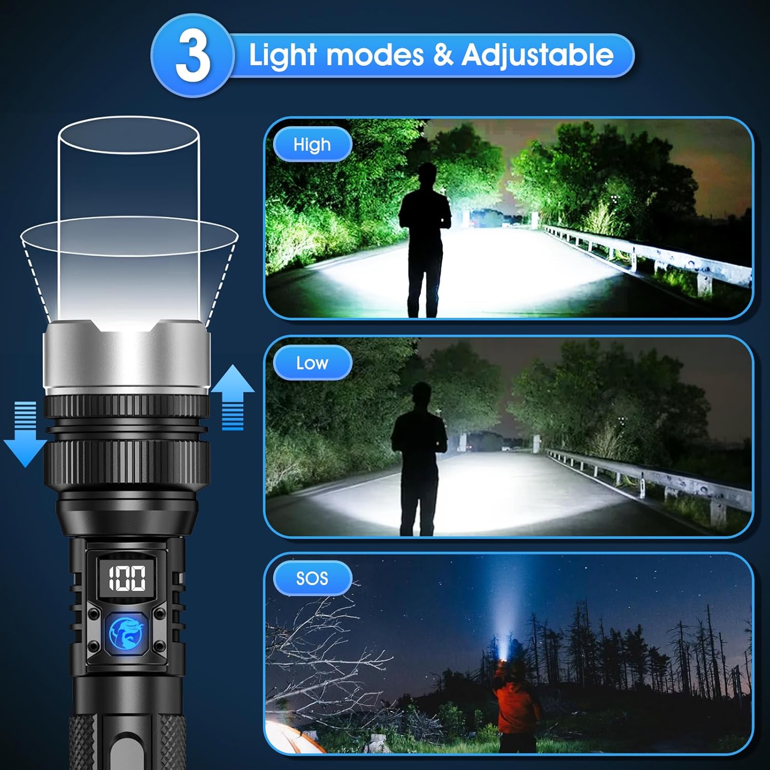 1000 Lumens Zoomable Flashlight - Super Bright Tactical Torch