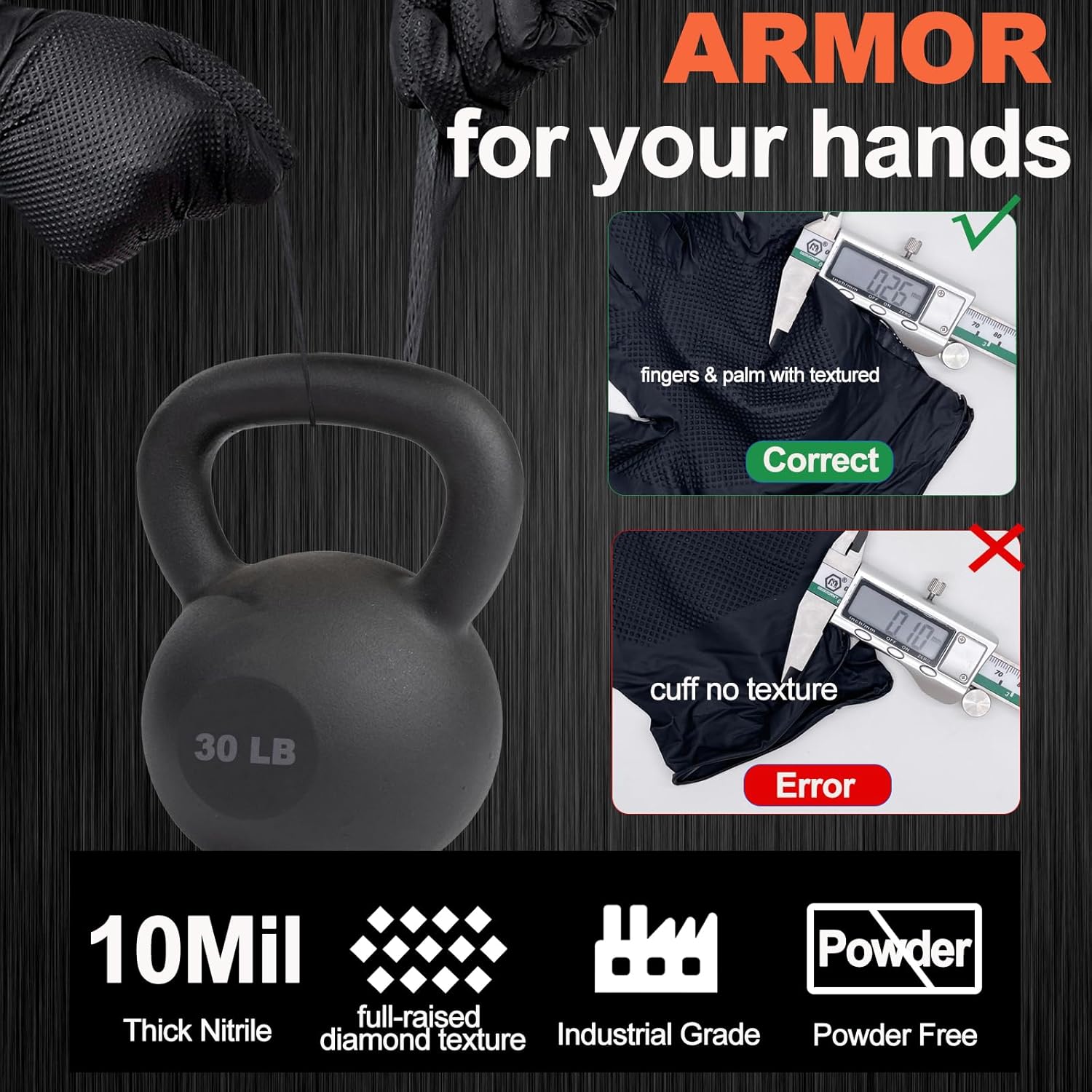 100pcs Nitrile Disposable Gloves - Black Chemical-Resistant Rubber