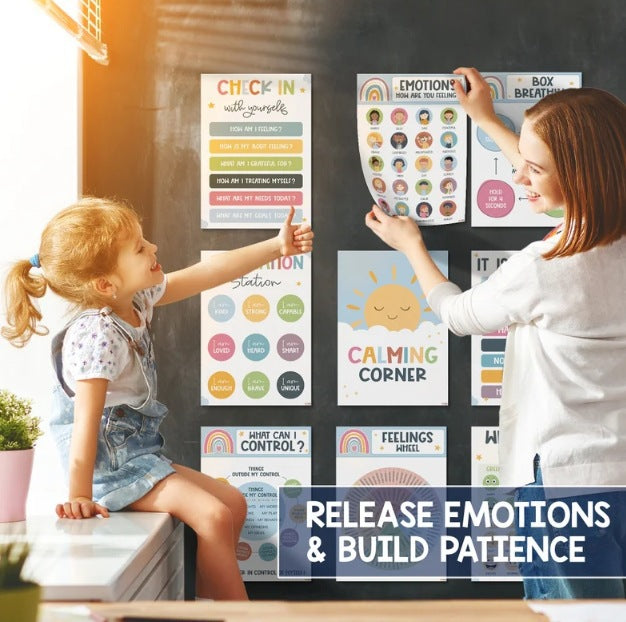 12 Calming Corner Classroom Posters - Feelings Wheel Chart & Emotions Poster