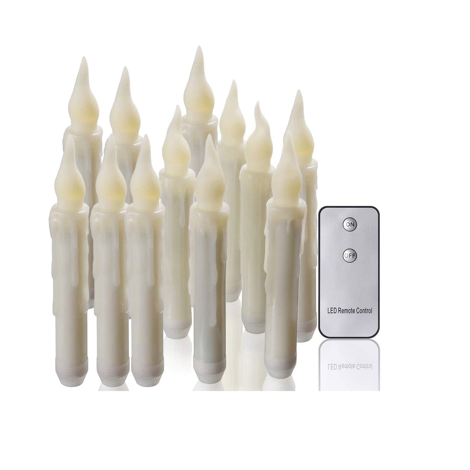 The included remote control easily turns all LED cone candles on and off simultaneously, adding a touch of fun and fantasy to your Halloween/Christmas/witch-themed party decorations. Place these flameless candles around your home, and with a simple press, along with some incantations and actions, you can become a magician! [Requires 1 AAA battery (not included)]