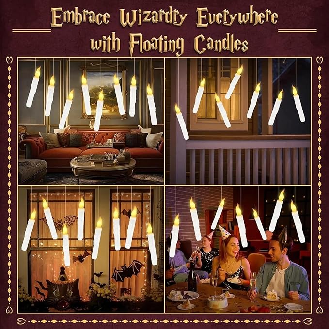 This set includes 12 LED candles and a magic remote control. They feature realistic, warm flames and dripping wax effects. Perfect for movie-themed parties, table decorations, and even more surprisingly, you can use fishing line to suspend the candles from the ceiling to create a "floating candle" effect.