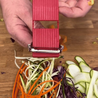 - Easily attach the red part to create a compact, razor- mandoline in seconds.