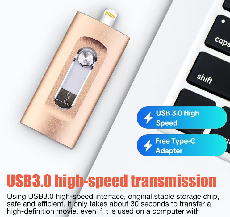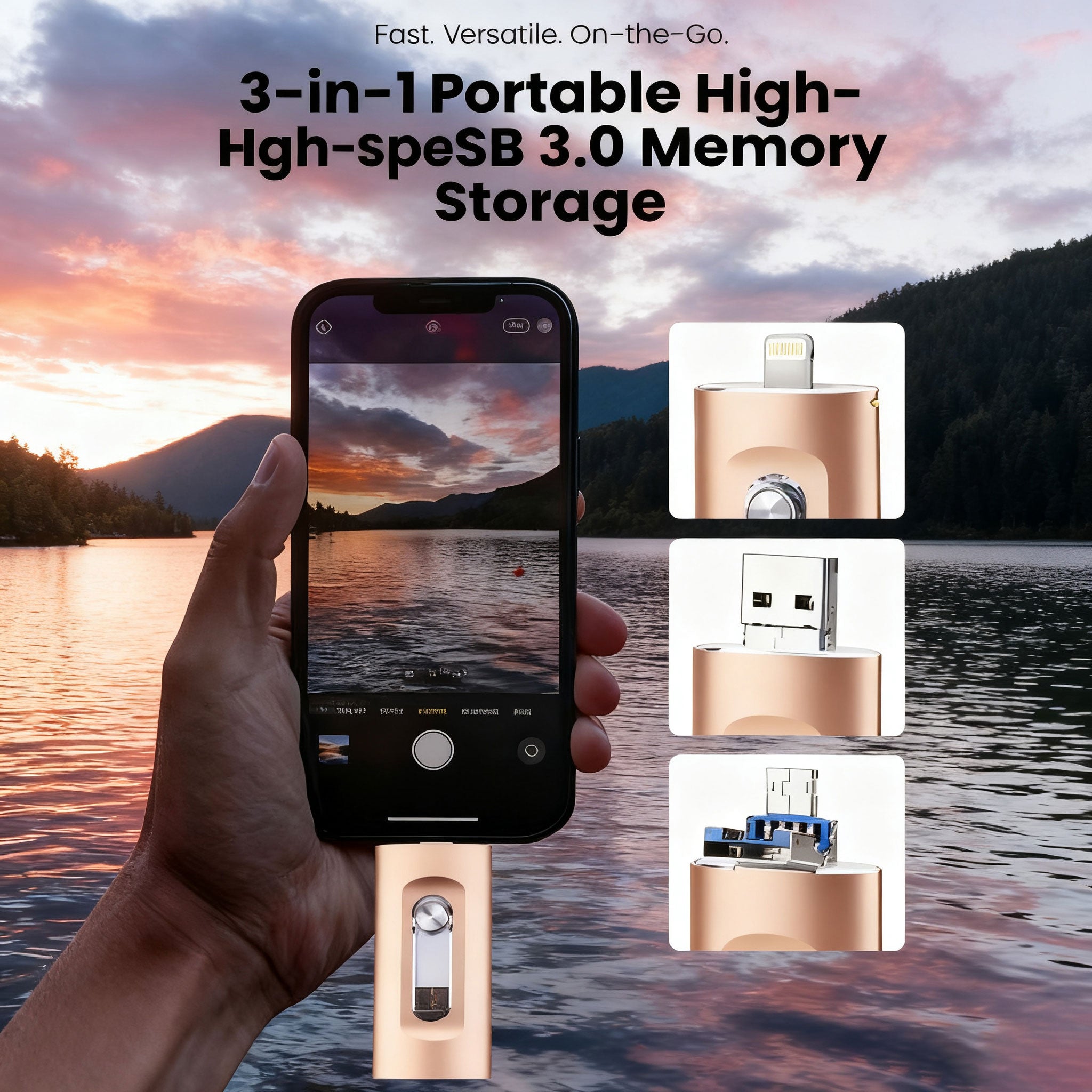 3-in-1 USB Flash Drive - Compatible With Multiple Devices, Supports Android/Apple/USB3.0/Type-C