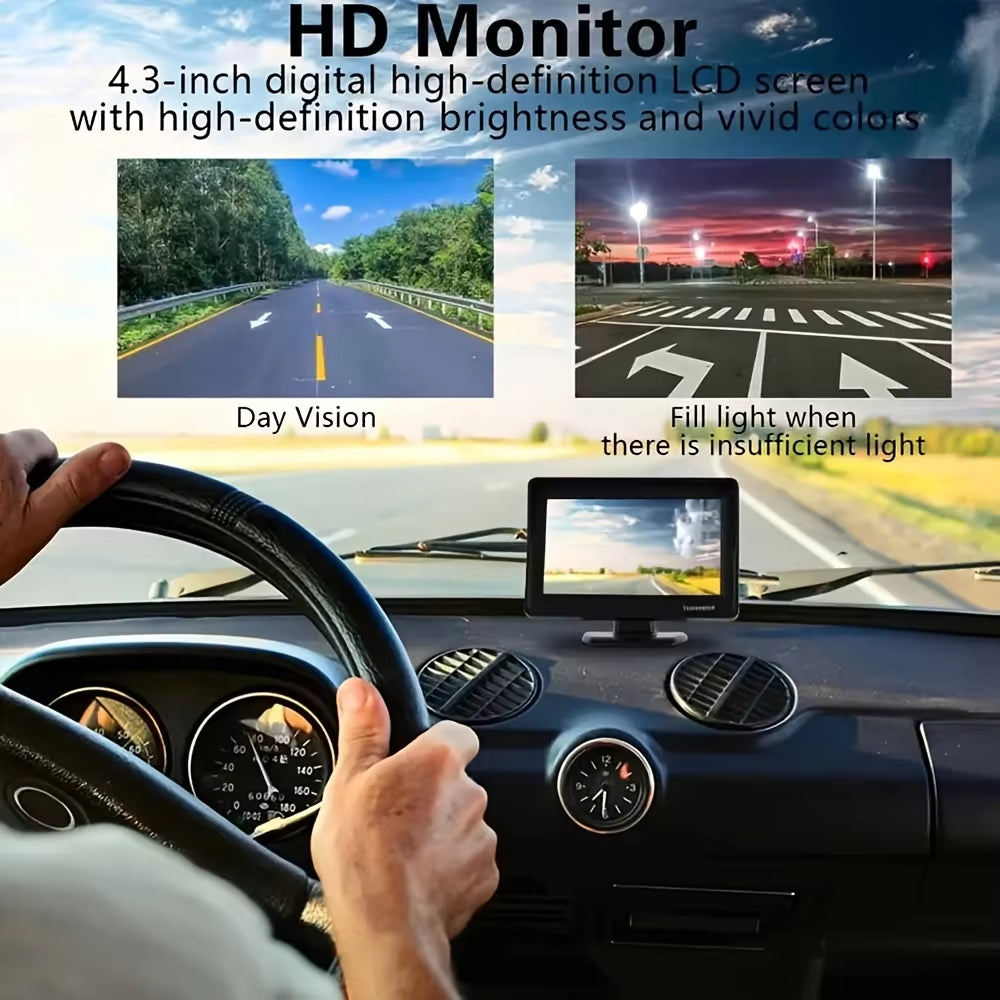 🚗 Large 4.3" Anti-Glare LCD Monitor & Crystal Clear Day