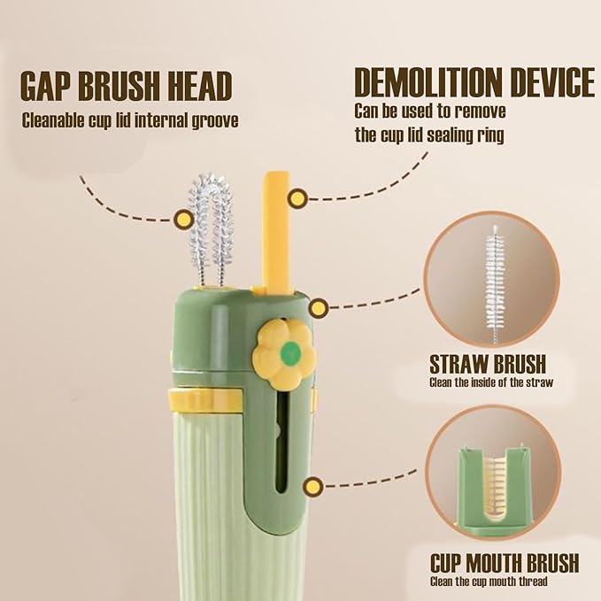 - This versatile brush combines 5 cleaning functions, perfect for water cups, bottles, bottles, sports bottles, and travel mugs.