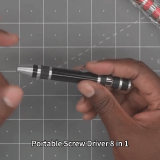 ☑️The pen's top unscrews, revealing a durable and impact-resistant interior that holds eight commonly used bits.