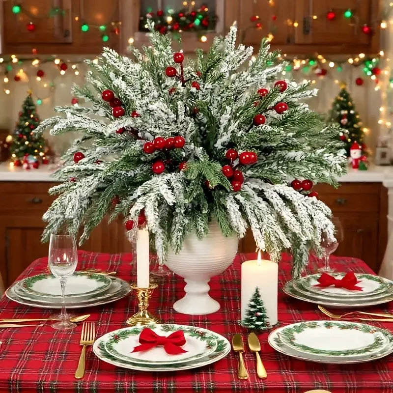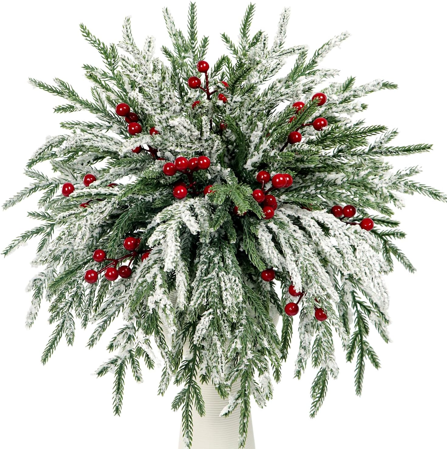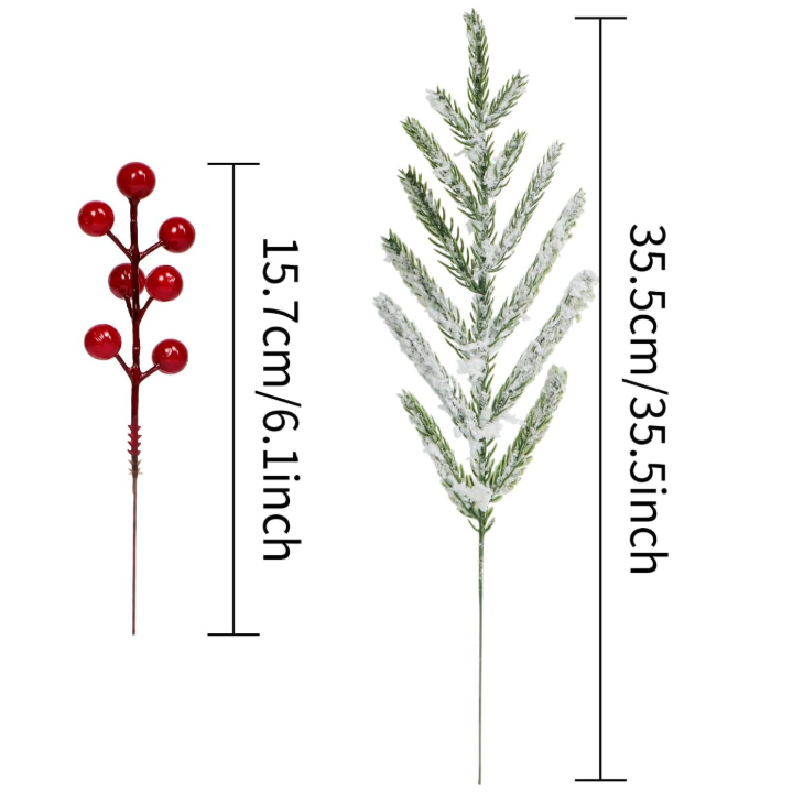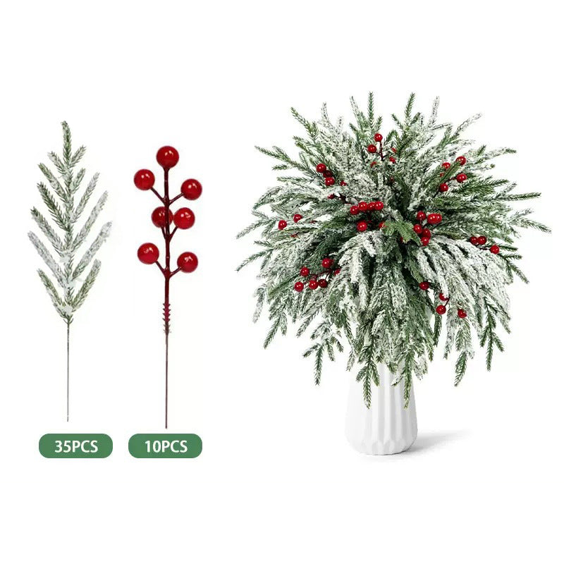 - Premium Choice: This set includes 35 artificial pine branches and 10 berry branches, made of high-quality materials with a realistic texture.