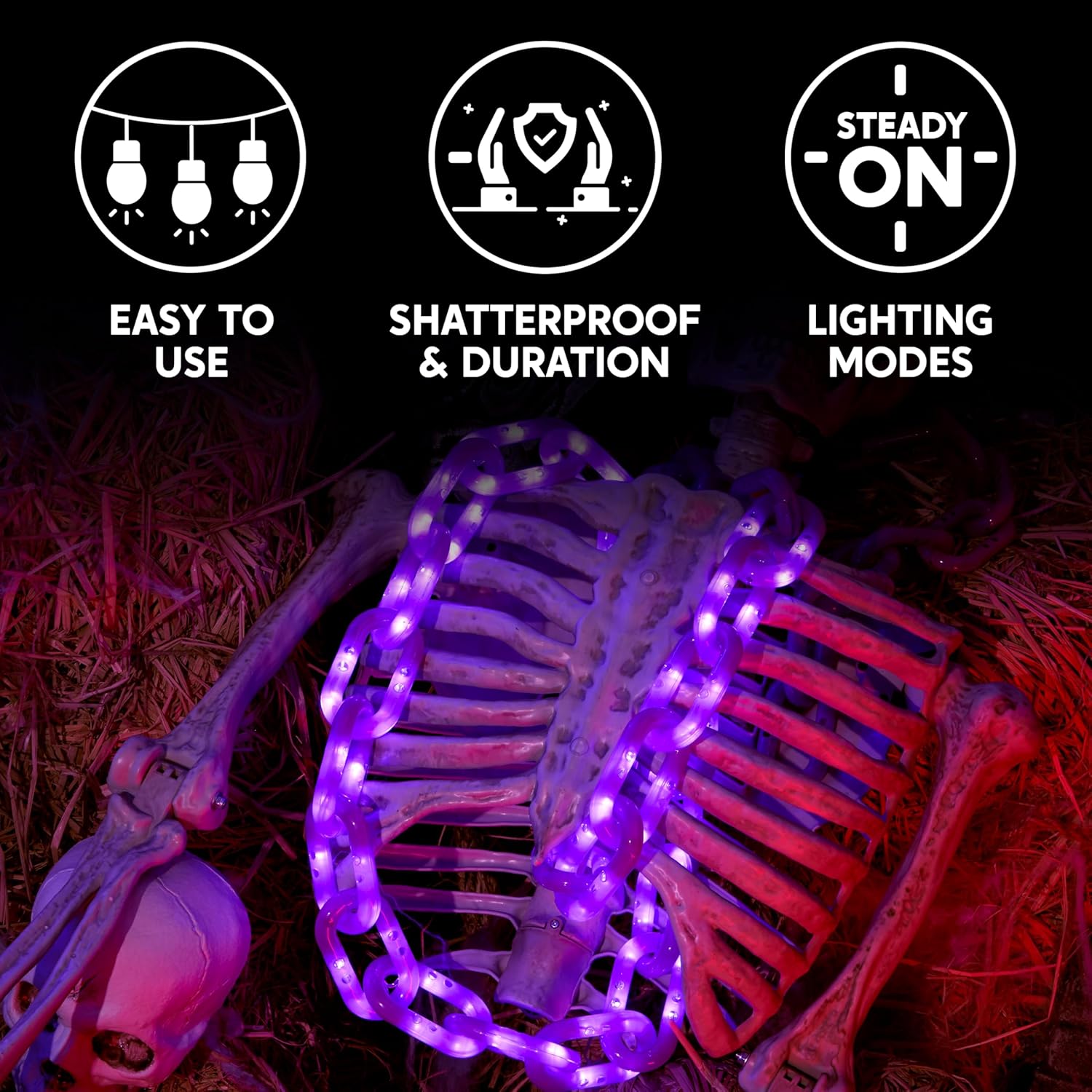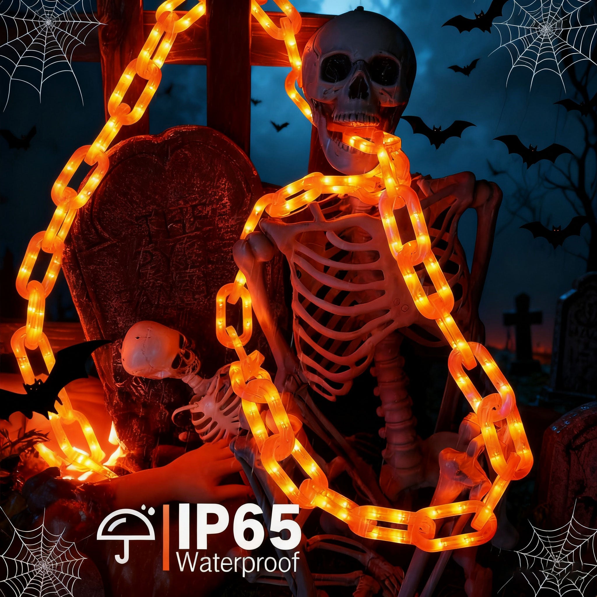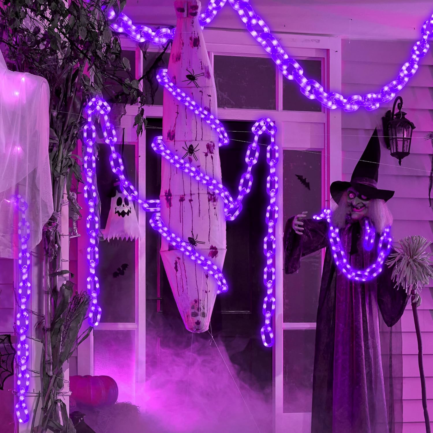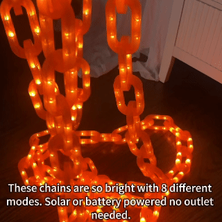 These LED chain lights are perfect for creating a spooky ambiance on Halloween night. With bright, glowing orange and purple lights, they add a haunting touch to your decorations. Perfect for decorating Halloween parties, cosplay, stage performance, theme parties and more. These chain lights can be wrapped around various objects to enhance your Halloween display and scare away the trick-or-treaters!