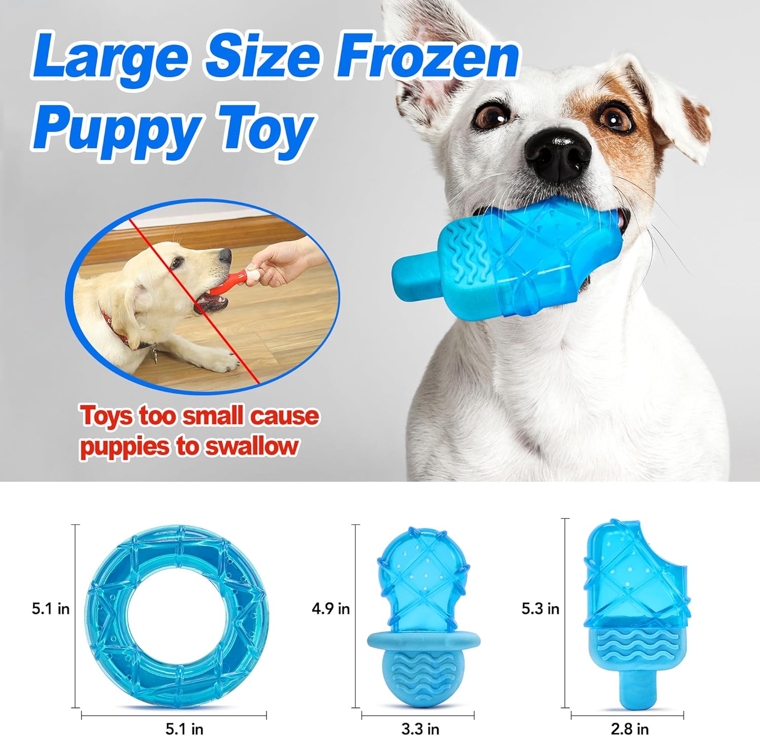 ☑️Puppy toys for teething designed large size holds more frozen pure water, puppy freezer teething toys long-lasting freezing effect.