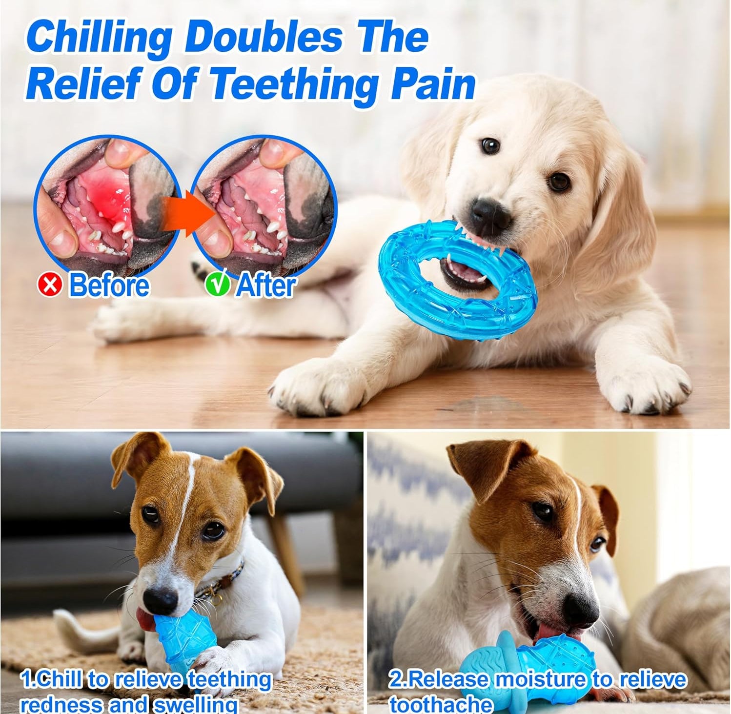 - Puppies Will Relieve Teething Discomfort by Drooling, Our puppy freezer teething toys need to be frozen with purified water.