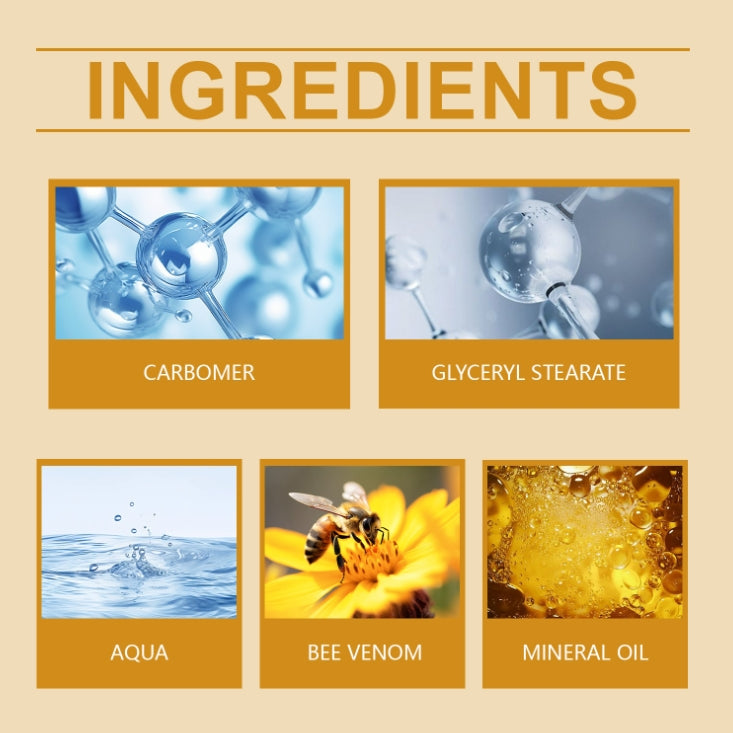 高級カルボマー、ミネラルオイルエキス、ステアリン酸グリセリル、毒蜂エキス、水から作られています。