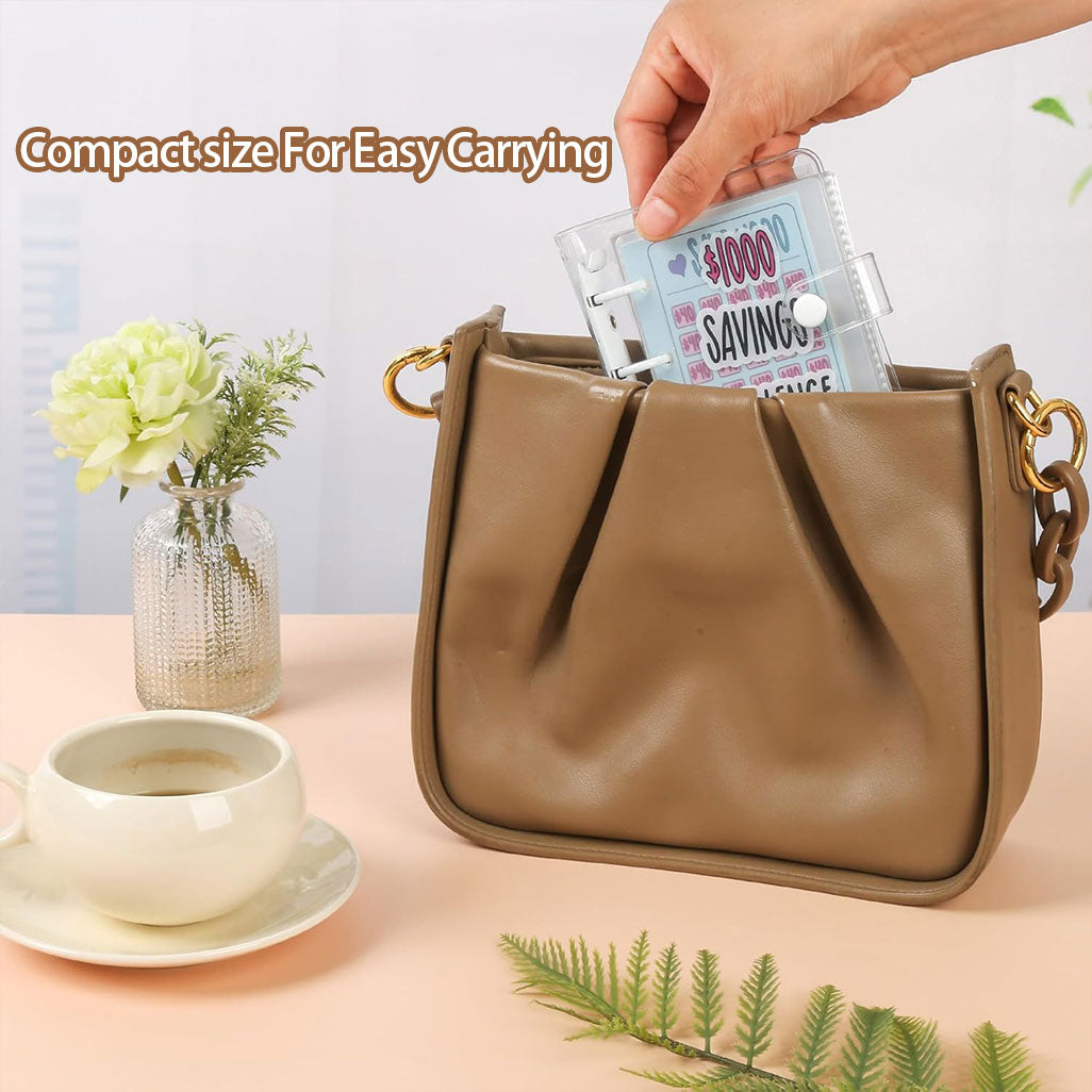 ☑️Mini savings challenges binder fits easily into your bag for on-the-go money saving and budgeting.