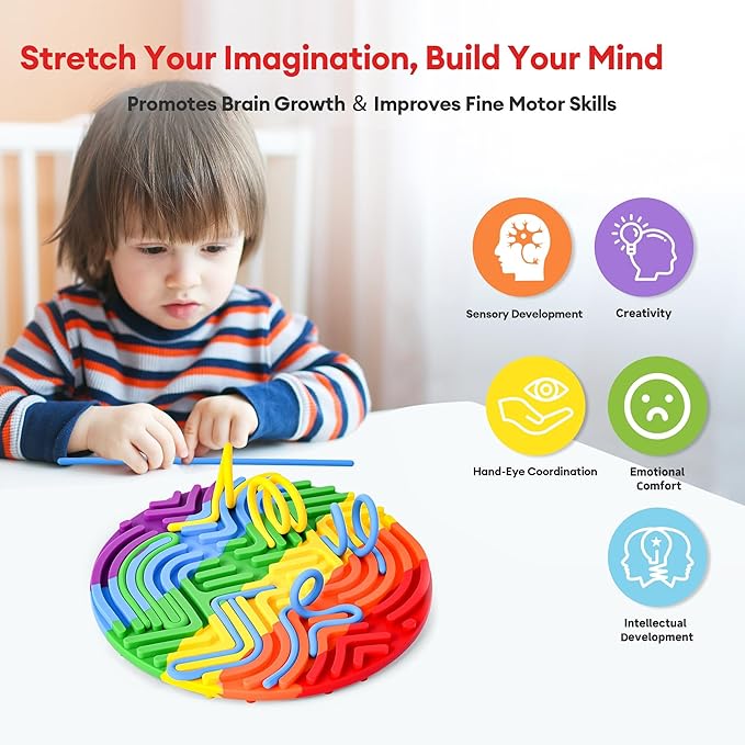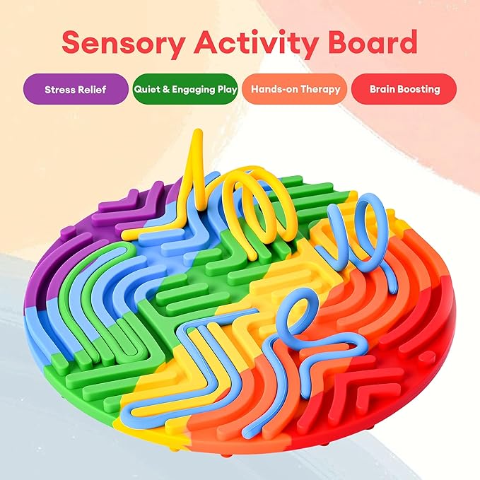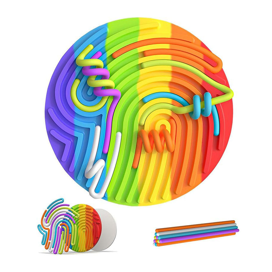 Sensory Activity Board, Double-Sided Silicone Sensory Fidget Toy with 11 Strings