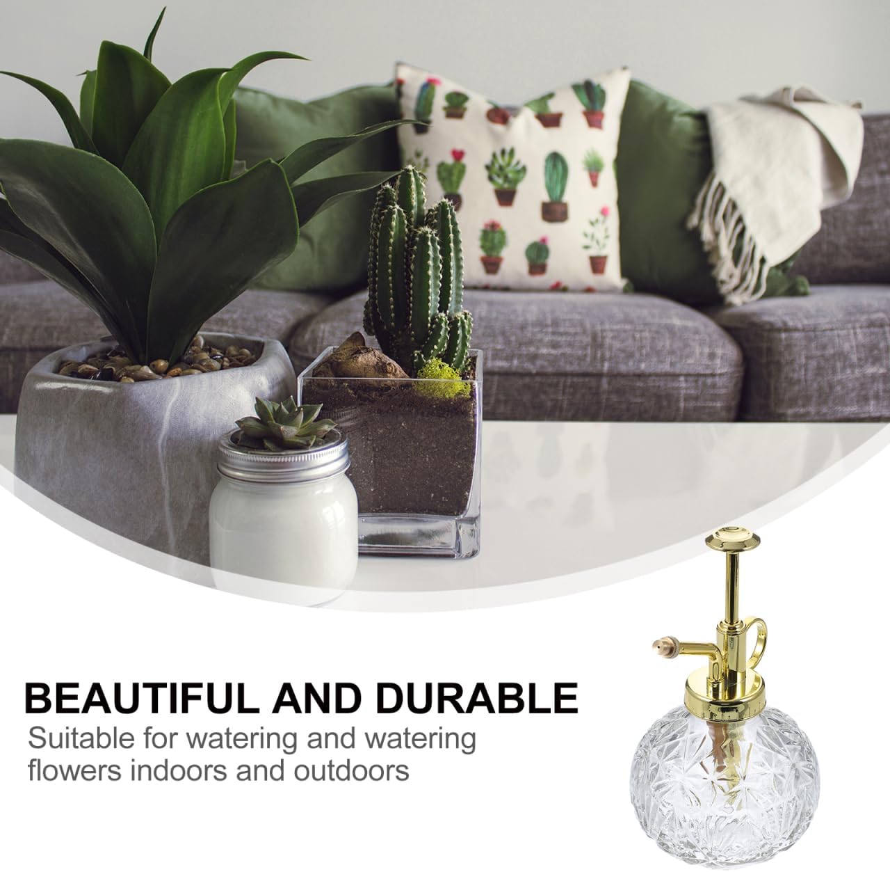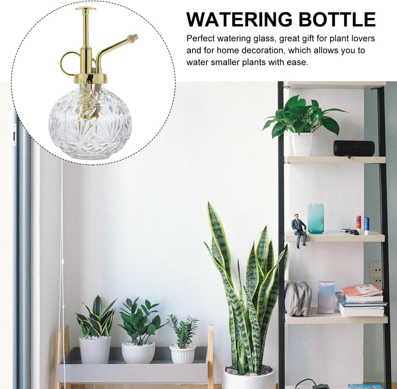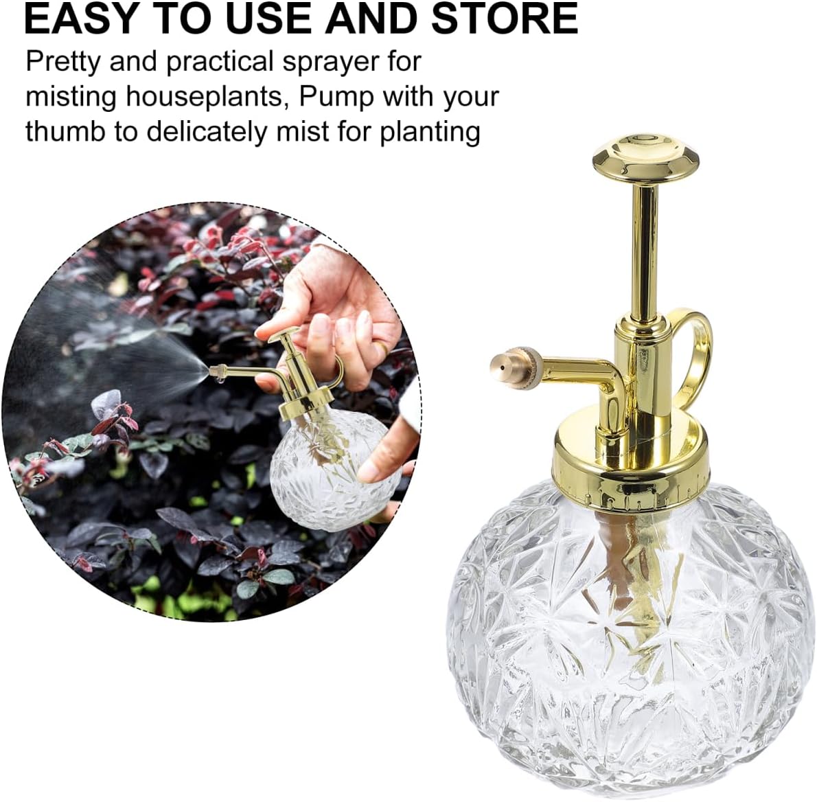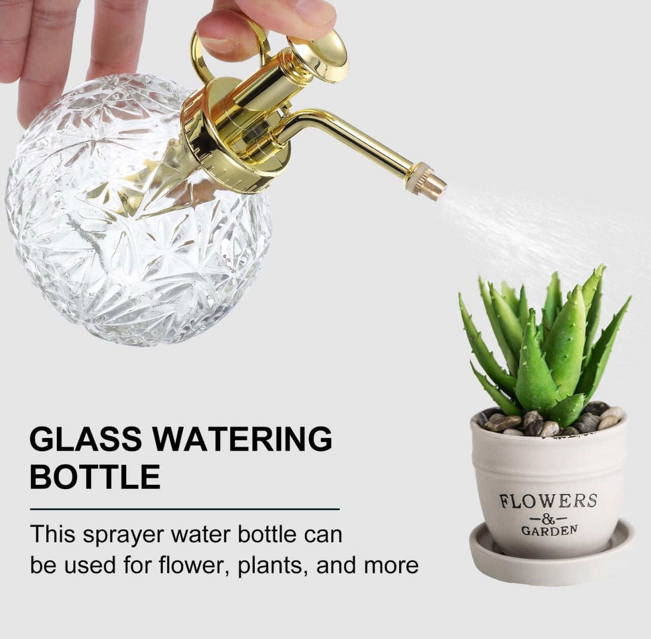 🌷 Transparent Glass Plant Mister Spray Bottle with Gold Top Pump