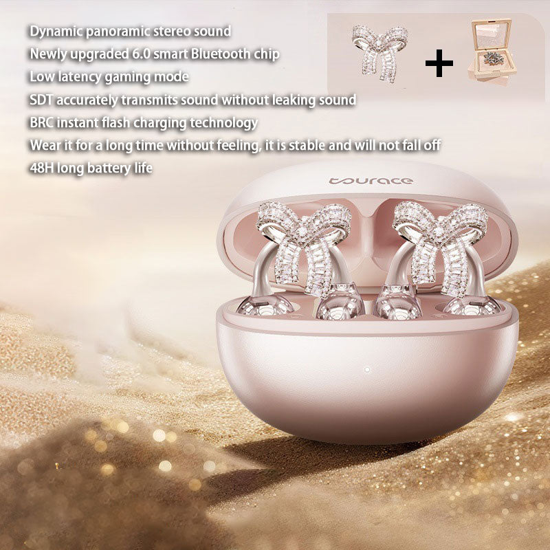 Bluetooth 5.4 Clip-On Headphones with Detachable Earrings - IPX5 Waterproof, Stable, 48H Long Battery Life