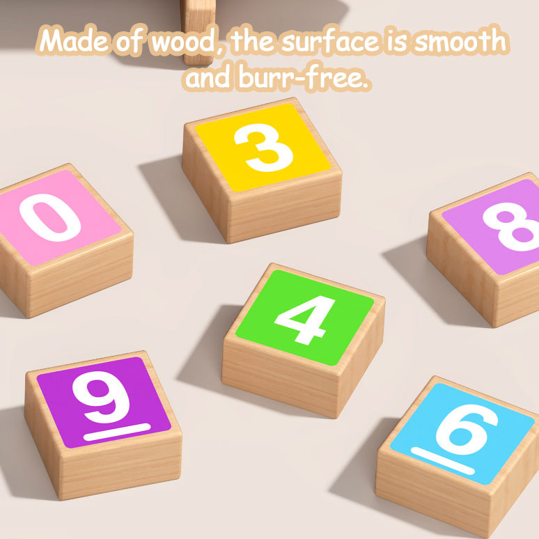 - Double-sided number blocks (0-10) and math symbol blocks(+, -, ×, ÷, ><): build and compare equations with ease.