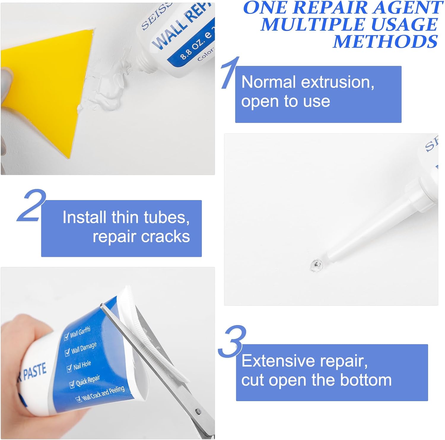 ✅This wall repair paste set is reusable, and repairs are virtually invisible.