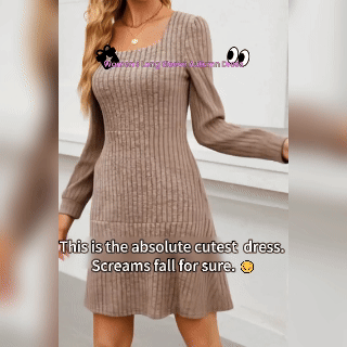 🍂🔥Womens Square Neck Long Sleeve Fall Dress