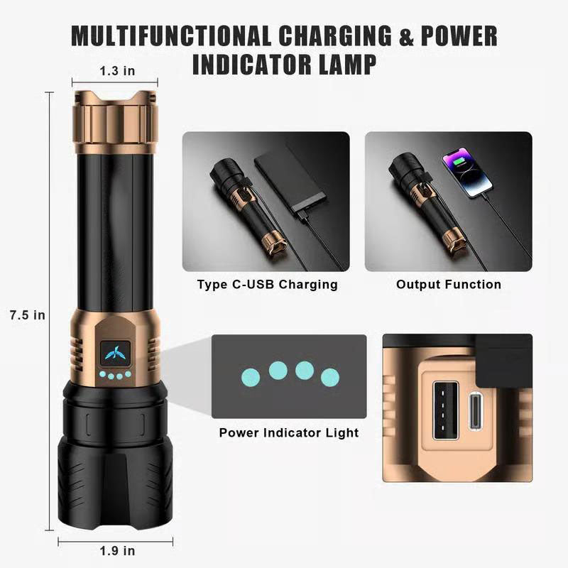 - The flashlight supports emergency reverse charging, acting as a power bank during critical moments.