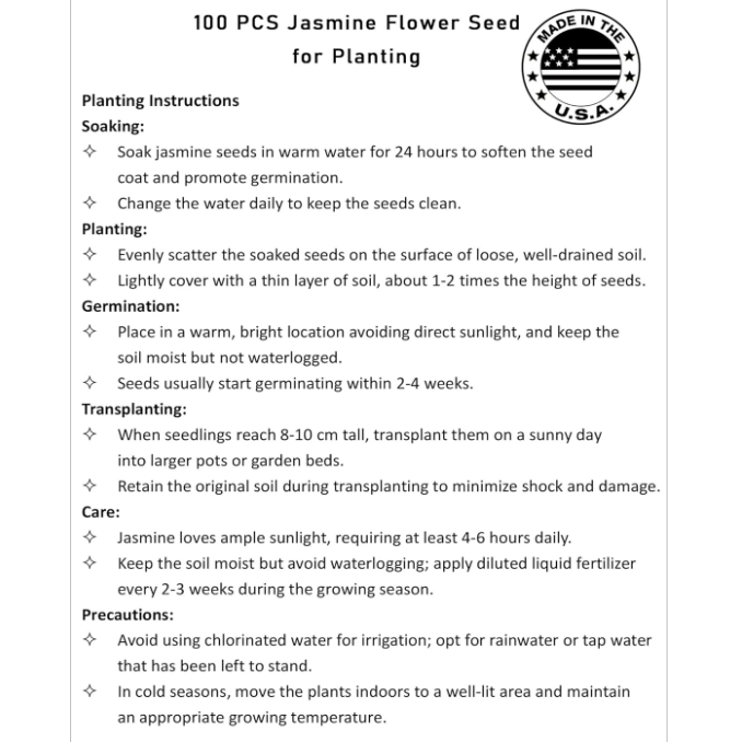 100 climbing jasmine seeds with fertilizer for planting