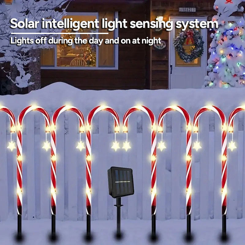 📍 1 Set 5 pcs Solar Christmas Candy Cane Lights, Outdoor Waterproof Pathway Stake Lights