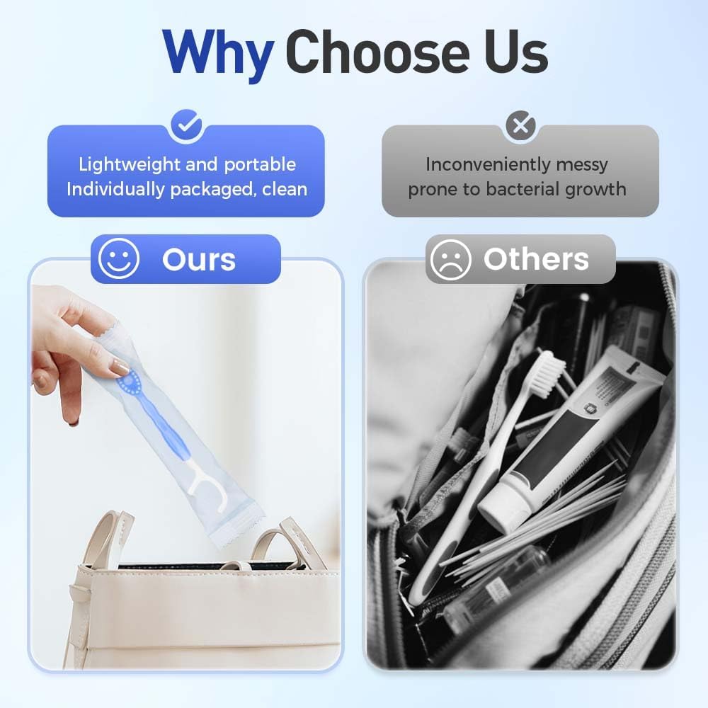 We've consolidated everything you need for a complete clean into one discreet, miniaturized tool - the most convenient way to maintain oral hygiene away from home! This 26-piece bulk pack ensures you're always prepared. Toss one in your bag and turn moments of dental dread into opportunities for fresh confidence.