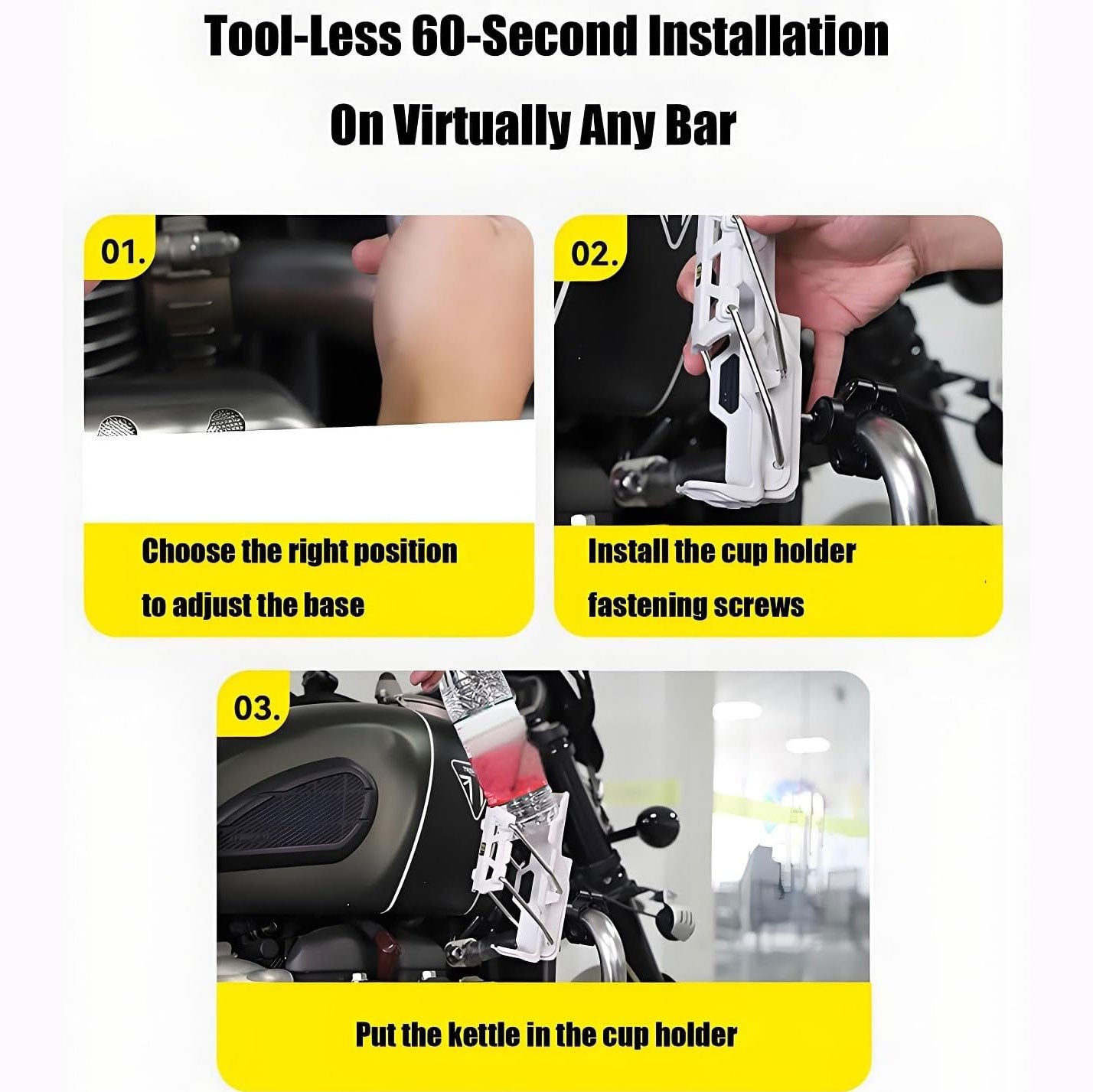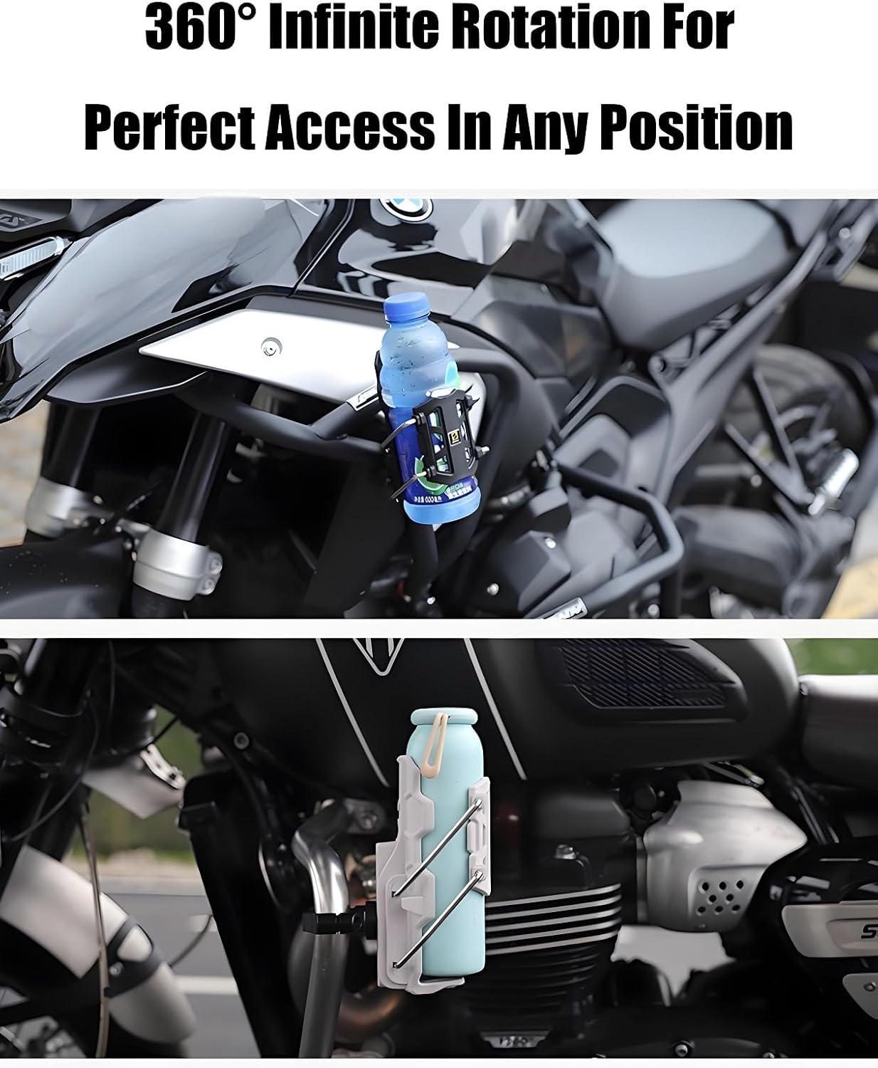☑️The holder auto-tightens onto your bike frame, reducing vibrations and preventing drops even on rough trails or at high speeds.