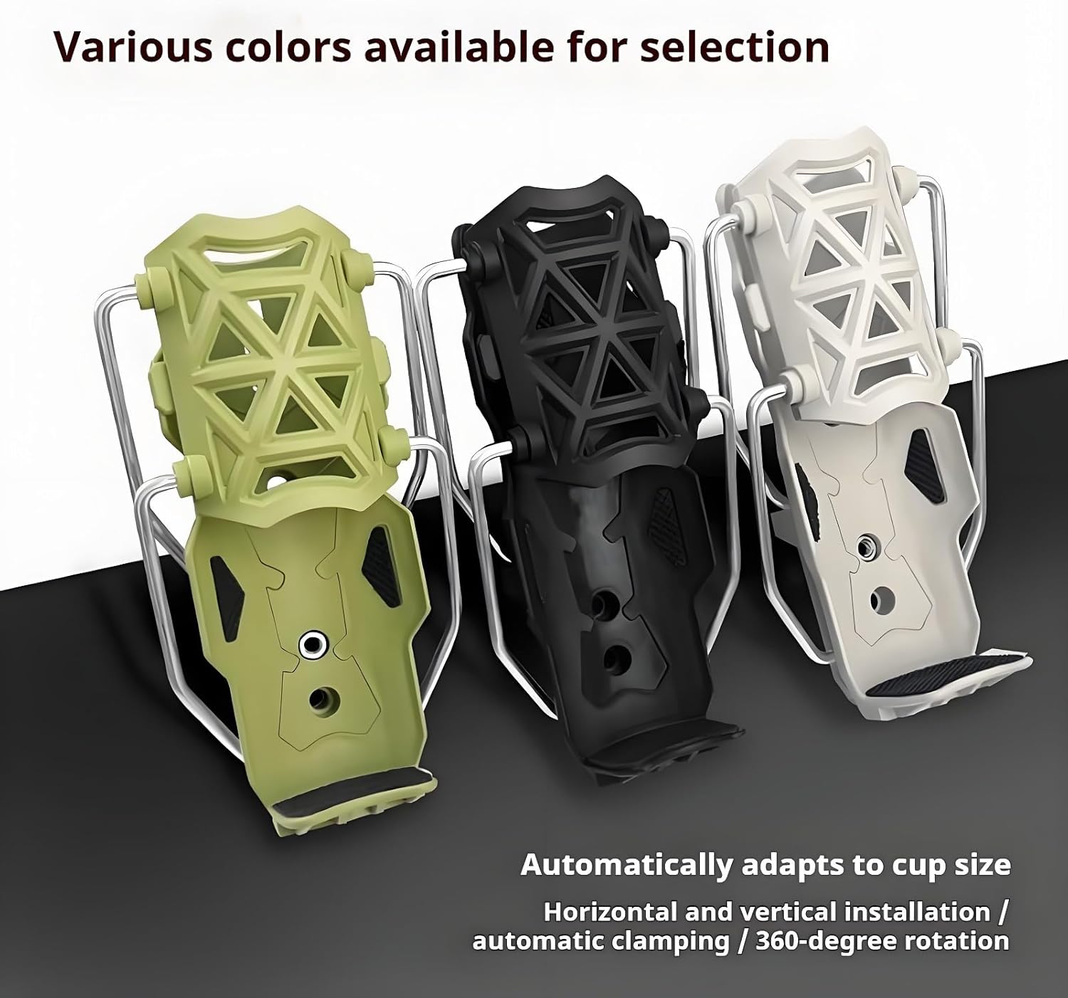 Features a flexible lattice structure that automatically expands and contracts to hold various water bottle sizes securely. This innovative design eliminates the need for multiple holders, offering added convenience for cyclists who change bottles often. Its swivel function is especially useful in tight spaces, helping prevent spills and supporting efficient hydration on the go.