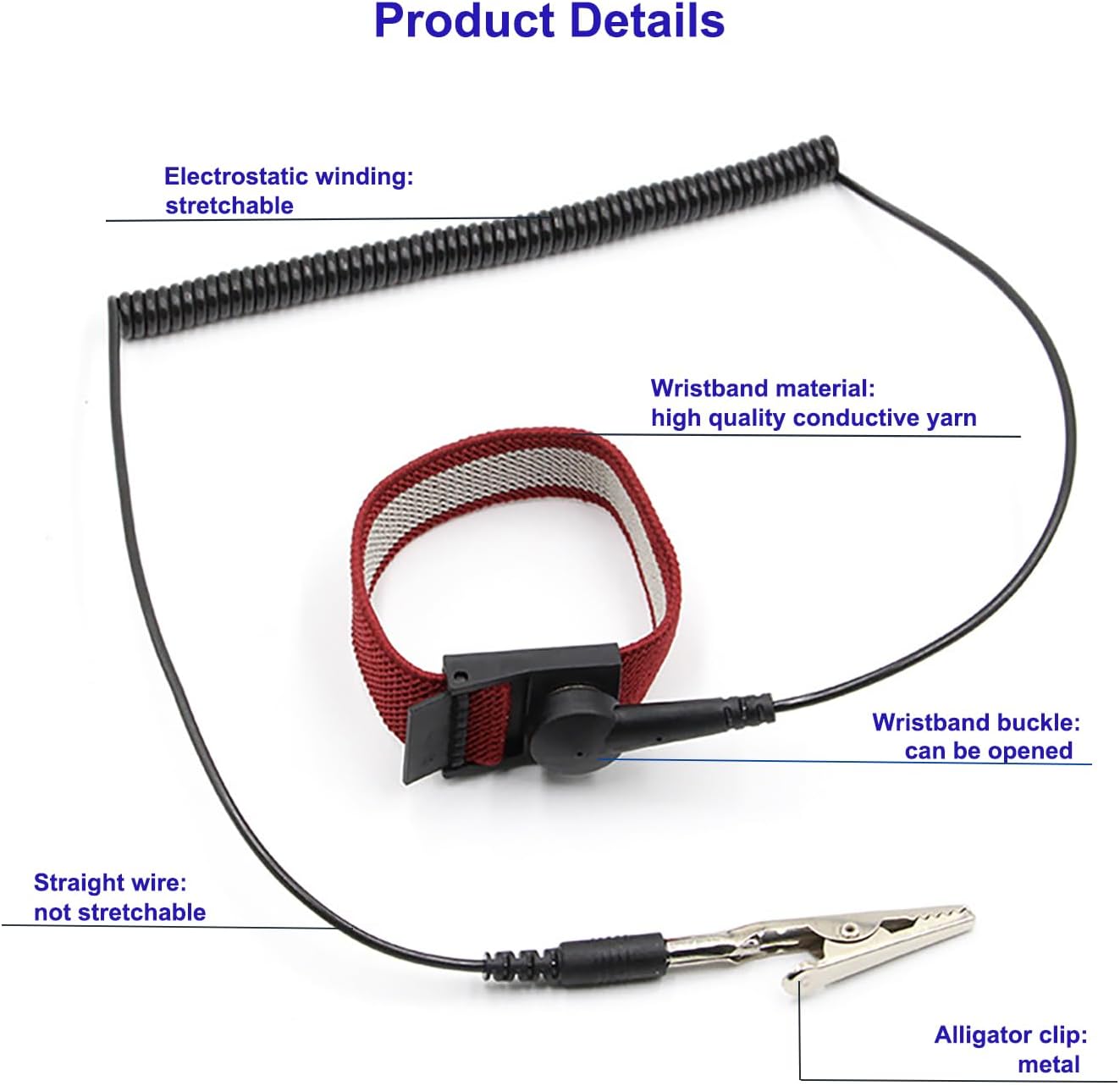 - Our ESD wrist strap features a soft, breathable band and a fully adjustable metal buckle clasp. This design ensures a secure and continuous metal-to-skin contact.