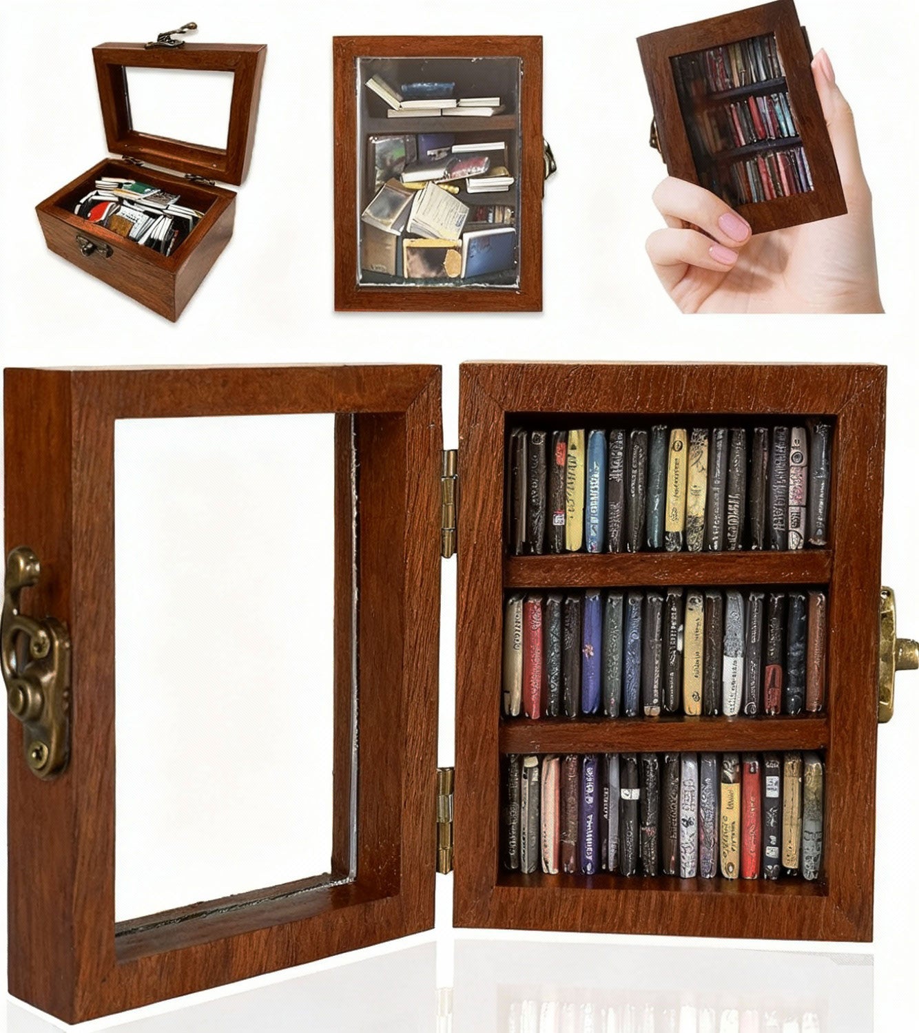 This miniature bookshelf, crafted from high-quality wood and handcrafted to create a vibrant and soothing addition to your home, is a work of art designed to comfort the soul and a treasure for book lovers and decor enthusiasts. It's the perfect gift for birthdays, celebrations, Christmas, Thanksgiving, and more. It blends anxiety-relieving charm with decorative appeal, creating a memorable gift.