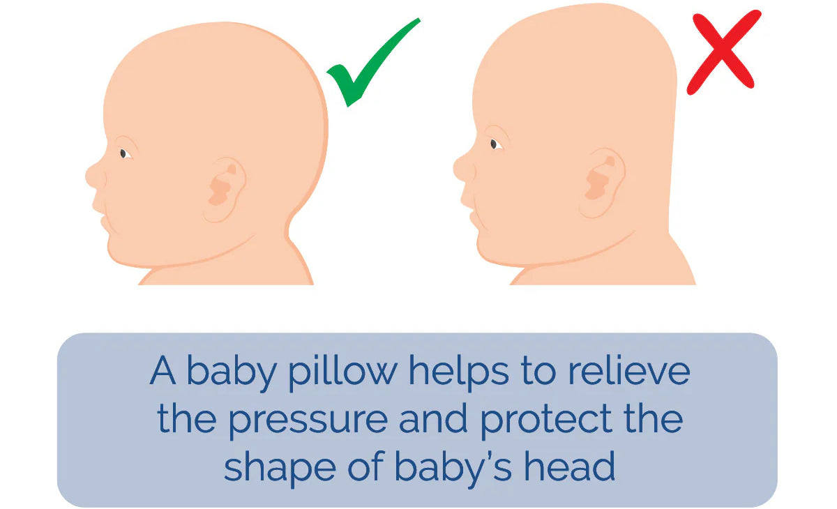 this pillow supports your baby's head shape, reduces pressure by 400% and encourages healthy head movement so your baby can have a comfortable sleep. It has a wide range of benefits and is becoming increasingly recommended by Paediatricians and Craniofacial Experts.