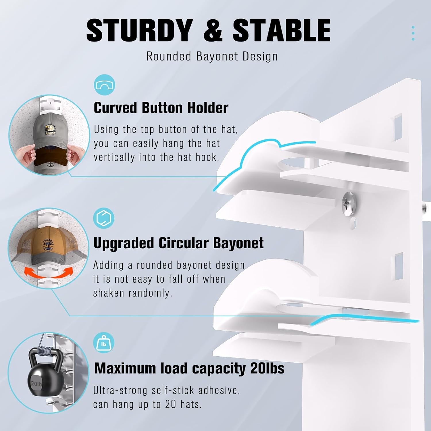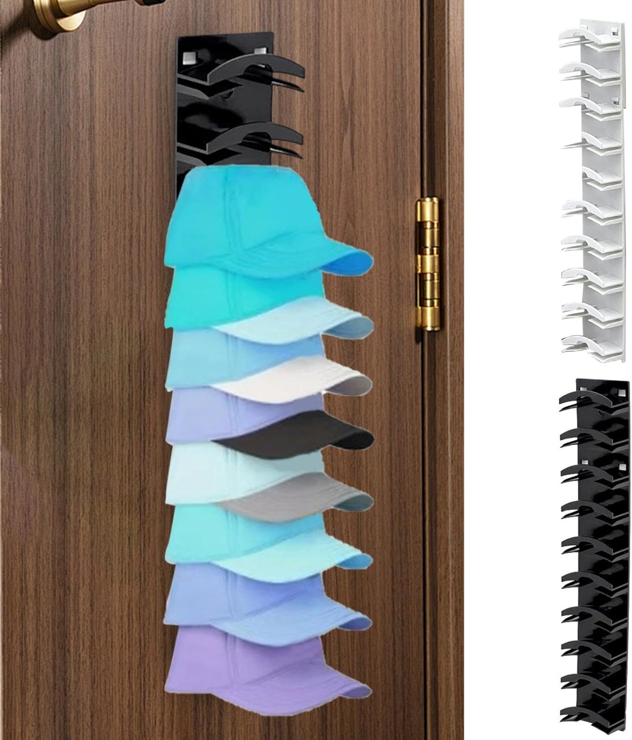 Attractive Living Space Showcase & Space Optimization Turn hats into home decor! The sleek black/white design displays caps artfully on doors or walls, adding style to bedrooms/entryways. Free up shelf space while keeping favorites visible – a must-have for clutter-free interiors! Holds up to 10 hats. Perfect for closets, doors, and small spaces, providing efficient hat storage.