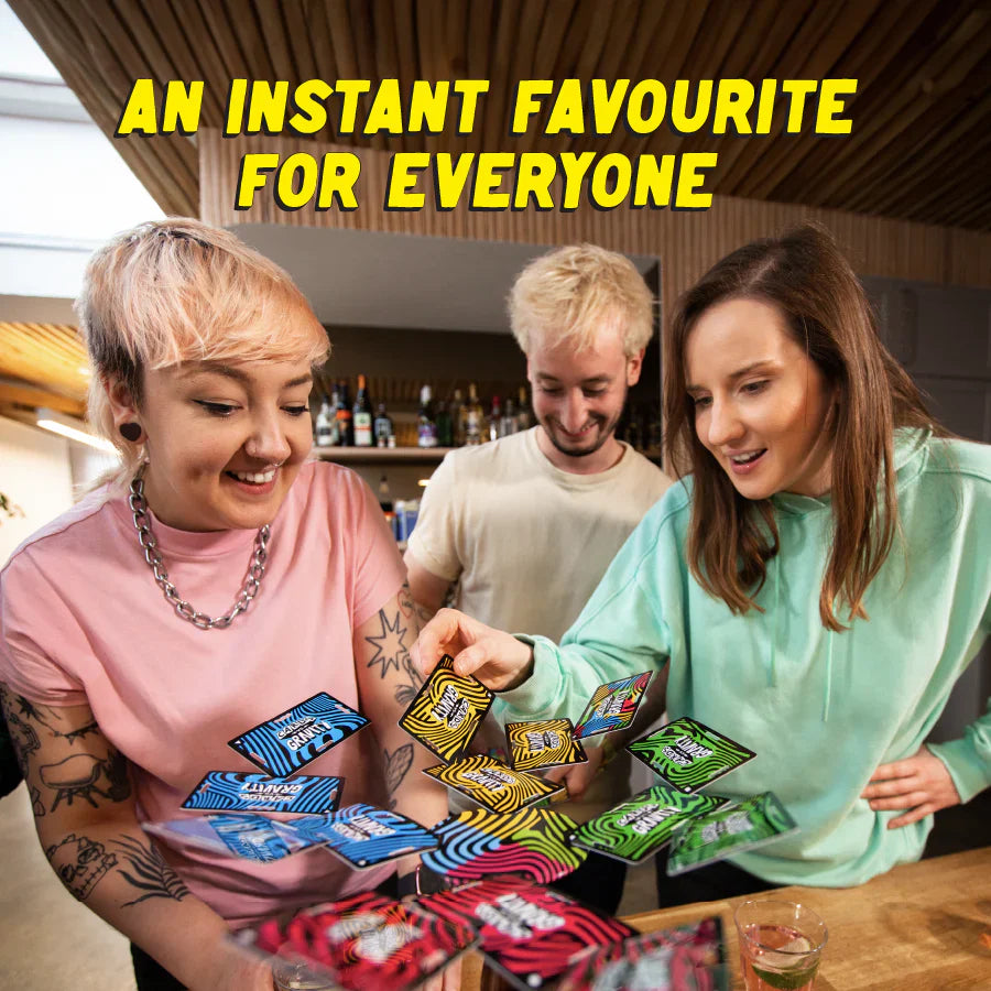 Ultimate Balance Challenge! This fun and easy card game for kids and adults is as simple as balancing, stacking and hanging cards on top of a bottle. Perfect for family game nights, parties, or team-building events.