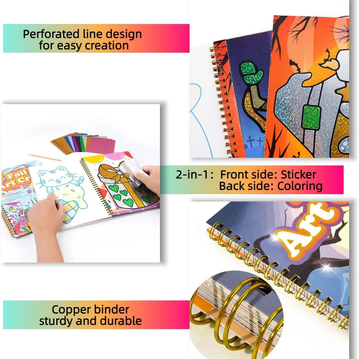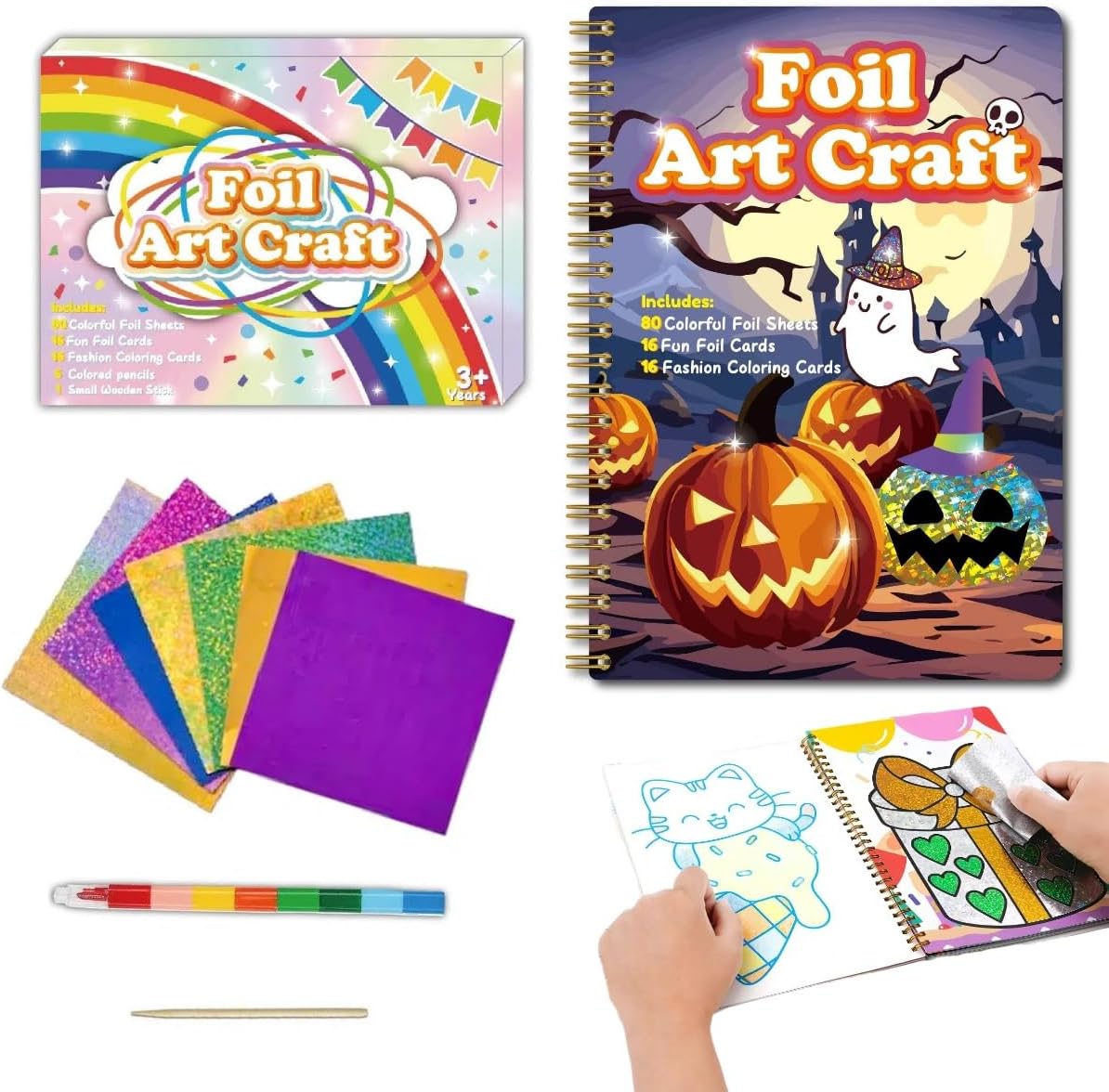 Unleash your child’s creativity with this all-in-one foil art craft kit! Each of the 16 tear-off pages offers dual fun: create dazzling foil art on the front, then flip over for a relaxing coloring activity. With 80 colored foil sheets and 8 vibrant crayons included, kids can design shimmering stickers and colorful masterpieces.