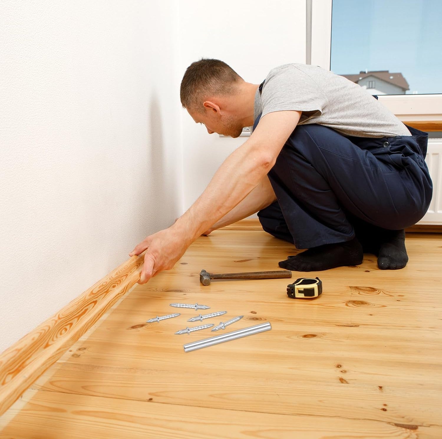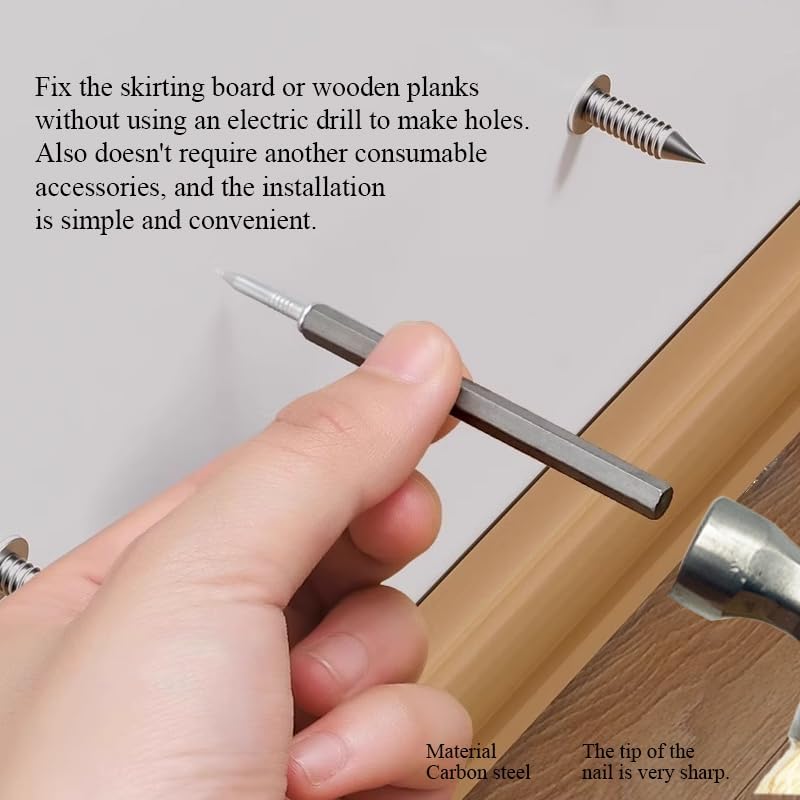With our special socket, our invisible security screws can be easily operated, no electric drill required. Simply place the nails in the sleeves, drive them into the wall, and secure according to the baseboard length.