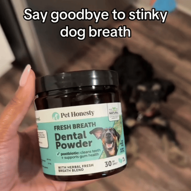Fight tartar, reduce plaque, and give your pupinstantly fresher breath! Simply sprinkle thismint and parsley-infused powderonto their food daily. Withnatural enzymes, probiotics, and coconut oil, it cleans teeth, supports gum health, and aids digestion.