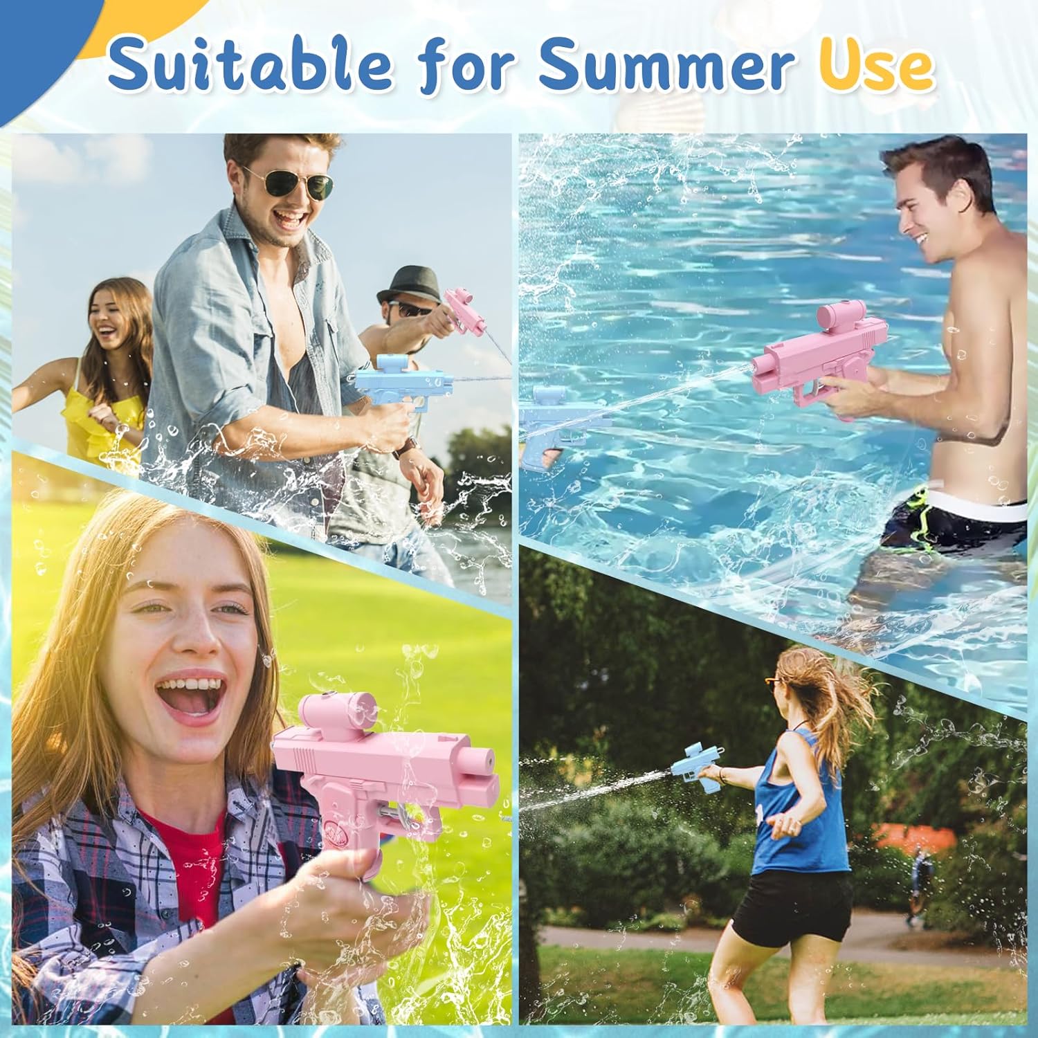 The Water Trickster isn't just a water gun—it's your secret weapon. Flip the switch to choose your power: unleash a long-range jet stream for precise targets or drench everyone in sight with a wide-area splash. Double the nozzles means double the fun and double the surprises. Get ready to outsmart, outsoak, and become the coolest kid in the summer!