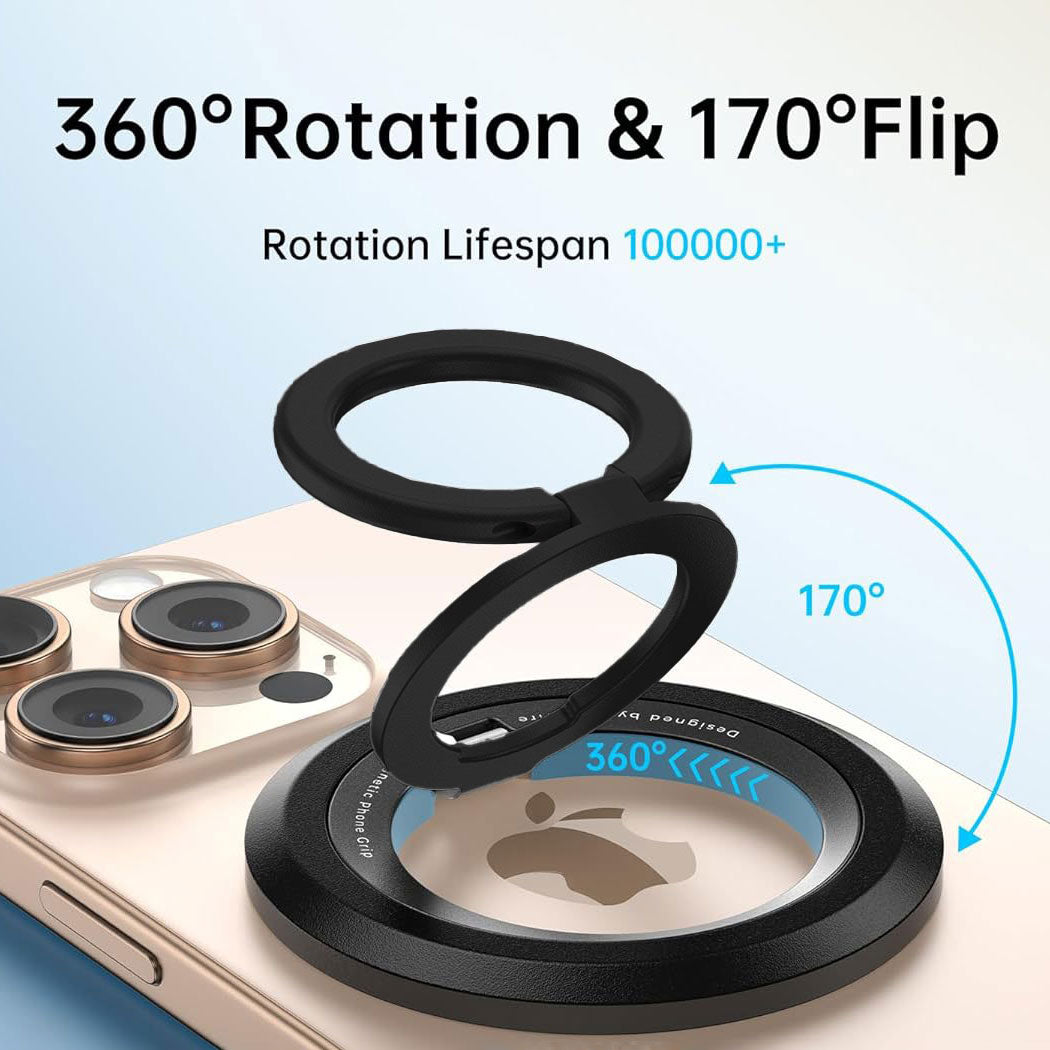 This magsafe phone grip features a dual-sided magnetic design, connecting directly to any magnetic car mount without removal. Its military-grade high-strength magnets keep your phone secure even on bumpy roads.