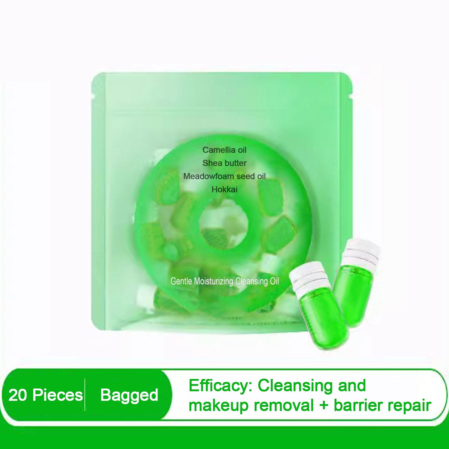 Each bag contains 20 capsules, each capsule is 2ml, designed for travel and daily outings. It can be easily put into a makeup bag for quick and efficient cleansing anytime, anywhere. Uses oil-dissolving principles to effortlessly remove makeup, impurities and excess oil while soothing and softening your skin.