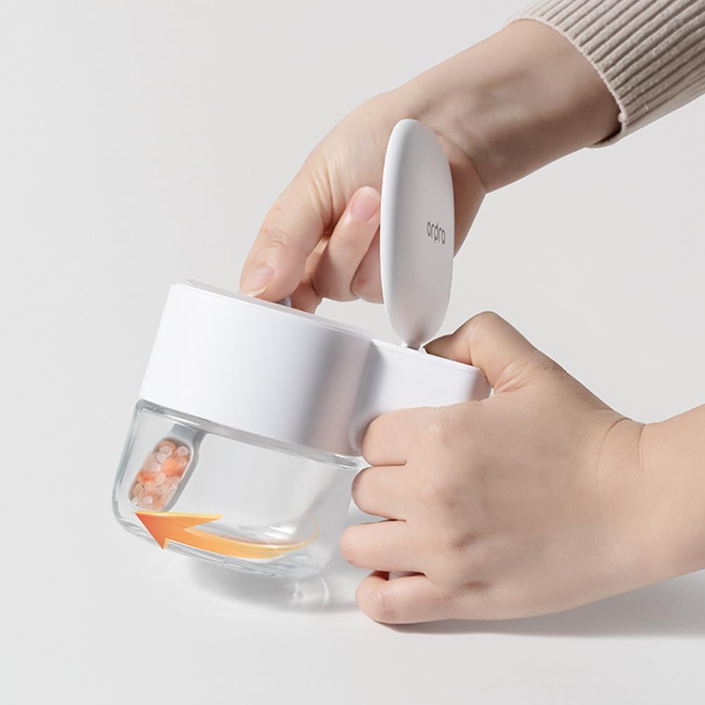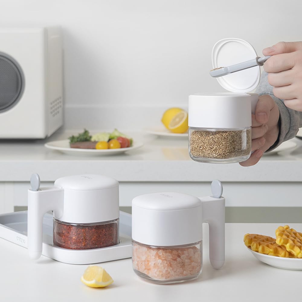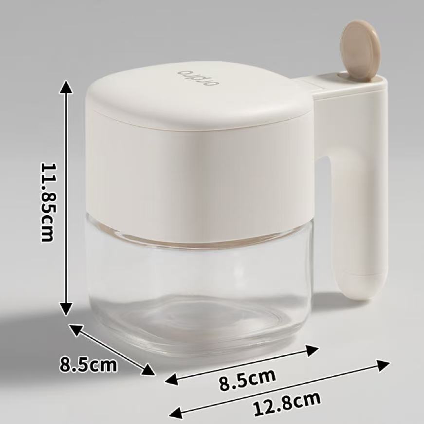 This New design Seasoning Box is design with automatic open lid by lever principle, spoon is not put in the jar like normal condiment pot, self-sealing when put the spoon in the handle, completely sealed for leak proof, prevent from any moisture and dust, avoid condiments caking. The proper size is an ideal choice for limited space, great for preventing spice from becoming damp and deteriorated.
