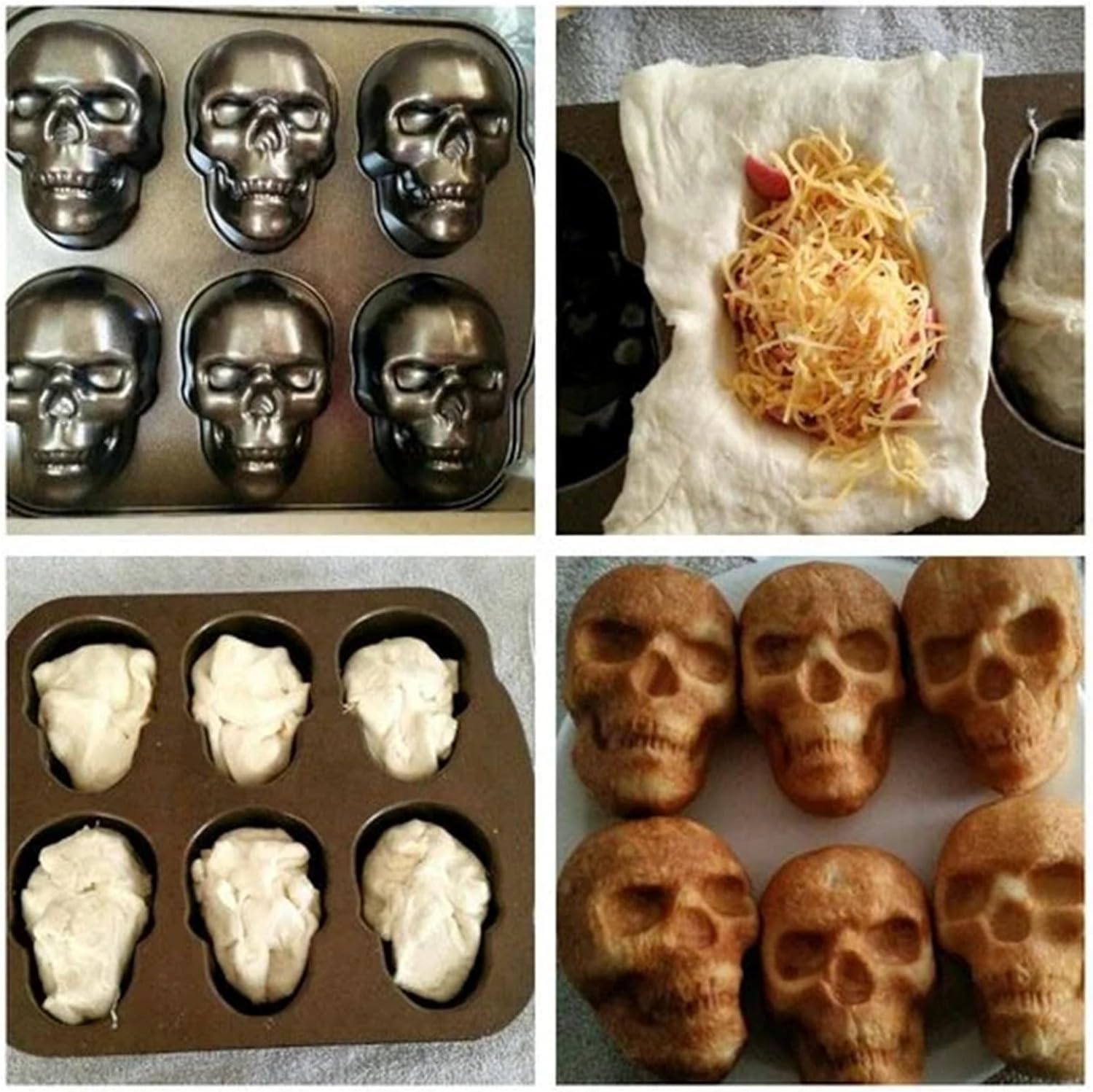 Each pan features intricate details like eye sockets, teeth, and nasal cavity, capturing a hauntingly authentic skull appearance. Your creations will look professionally made!