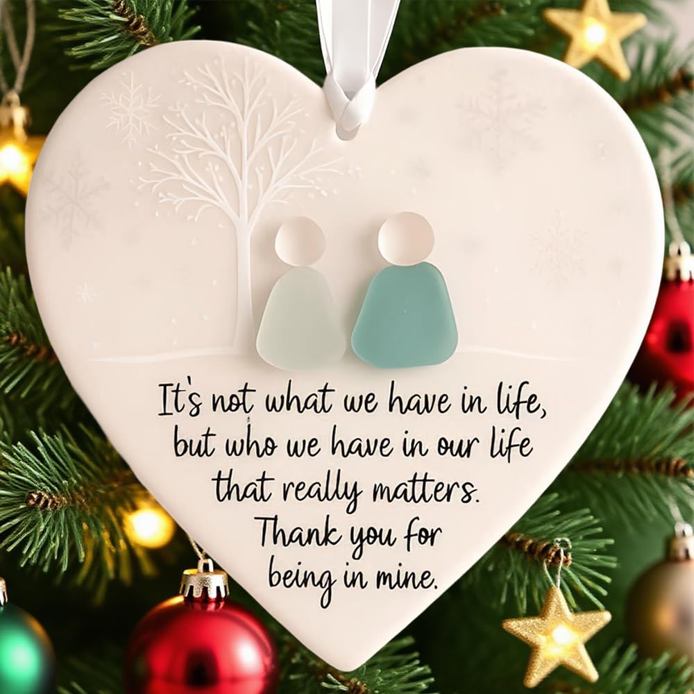 Handcrafted with love, each ceramic heart adorned with genuine sea glass is as unique as your friendship. This Heart-Shaped Ornament serves as a vibrant reminder of the bonds that friends share. When given as a gift, it transforms into a treasured memento, celebrating the laughter, support, and unforgettable moments that define true friendship.
