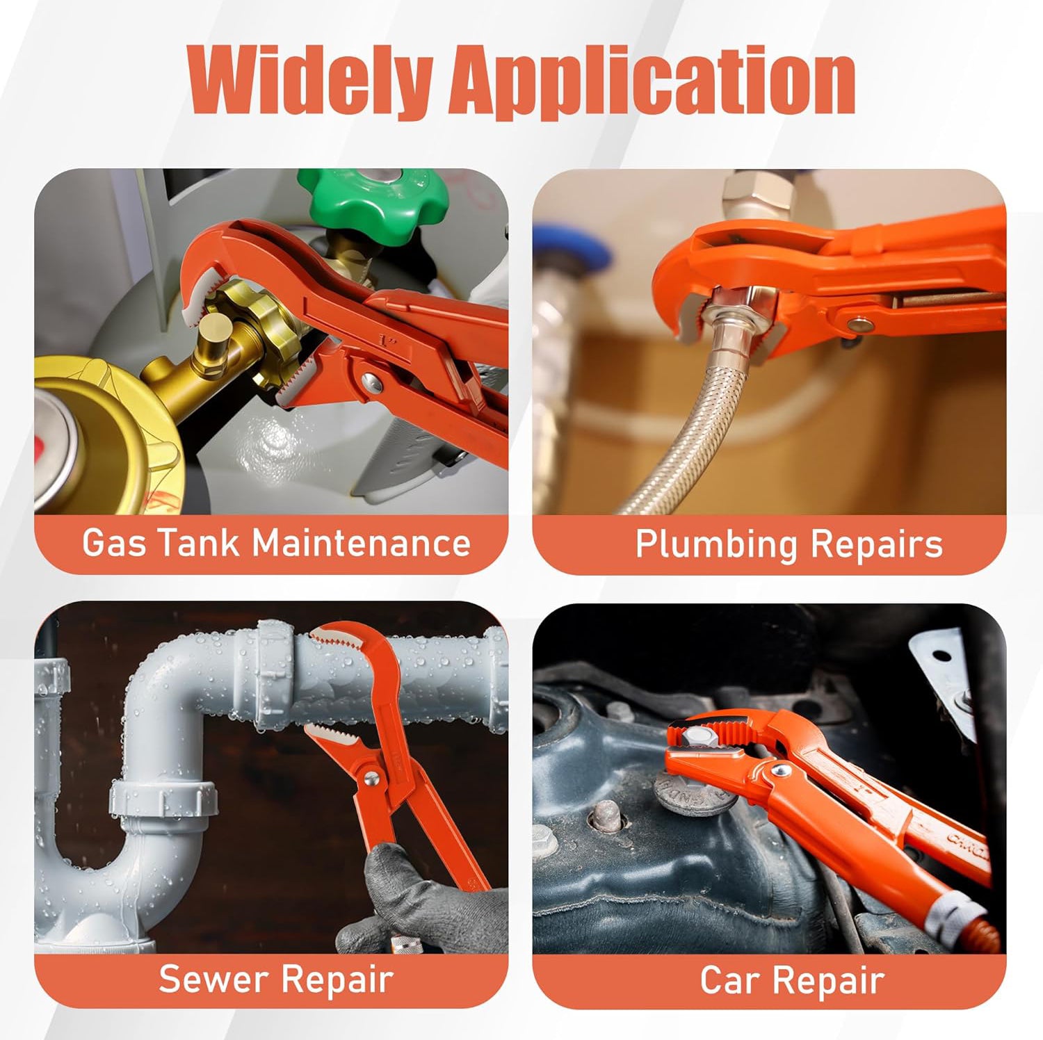 Heavy Duty Adjustable Plumbing Wrench with 90° Angled Jaw