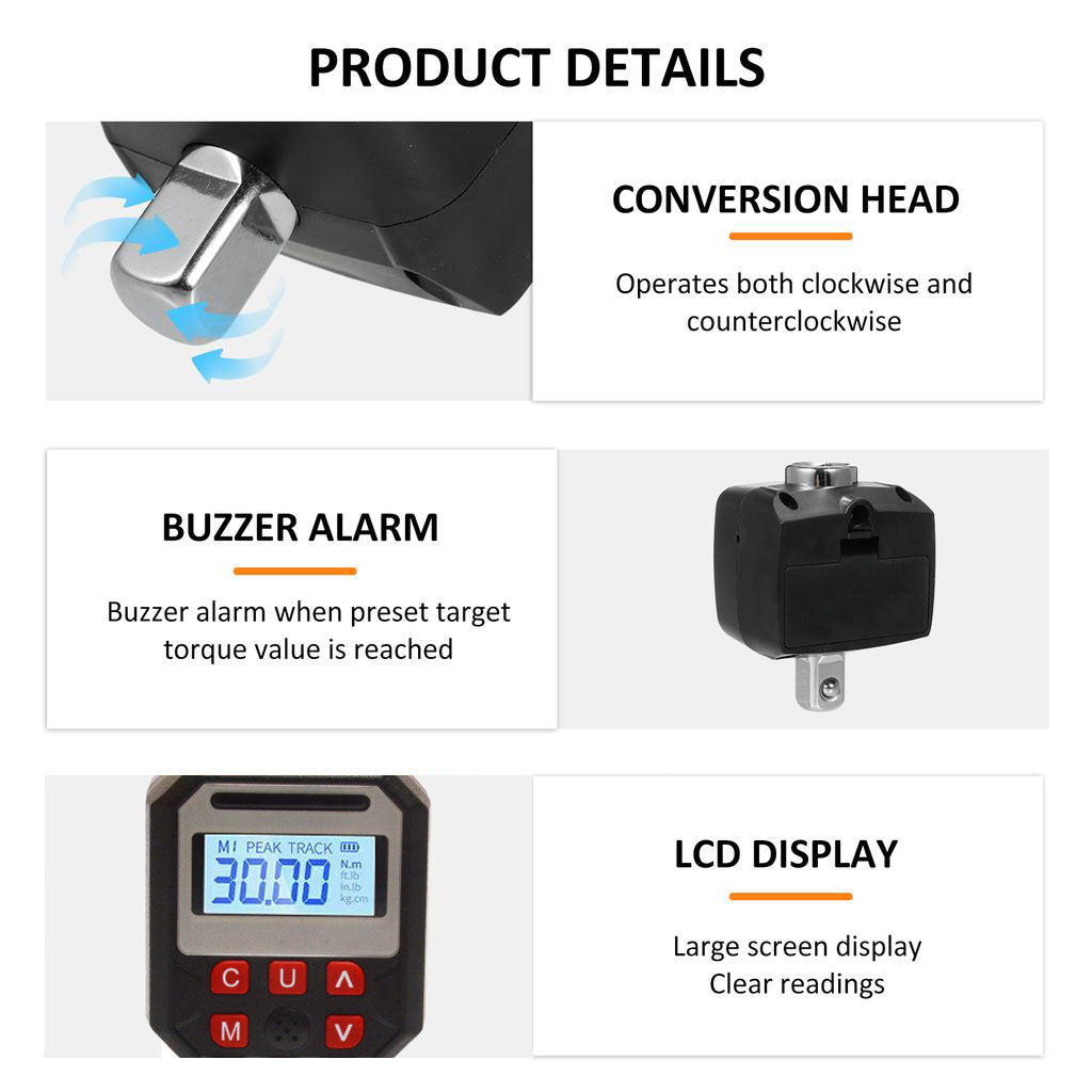 ➤1/2" Square Drive Adapter allows you to connect the tester directly to the most common 1/2" drive torque wrenches, sockets, and extensions, making it ideal for automotive and industrial applications.